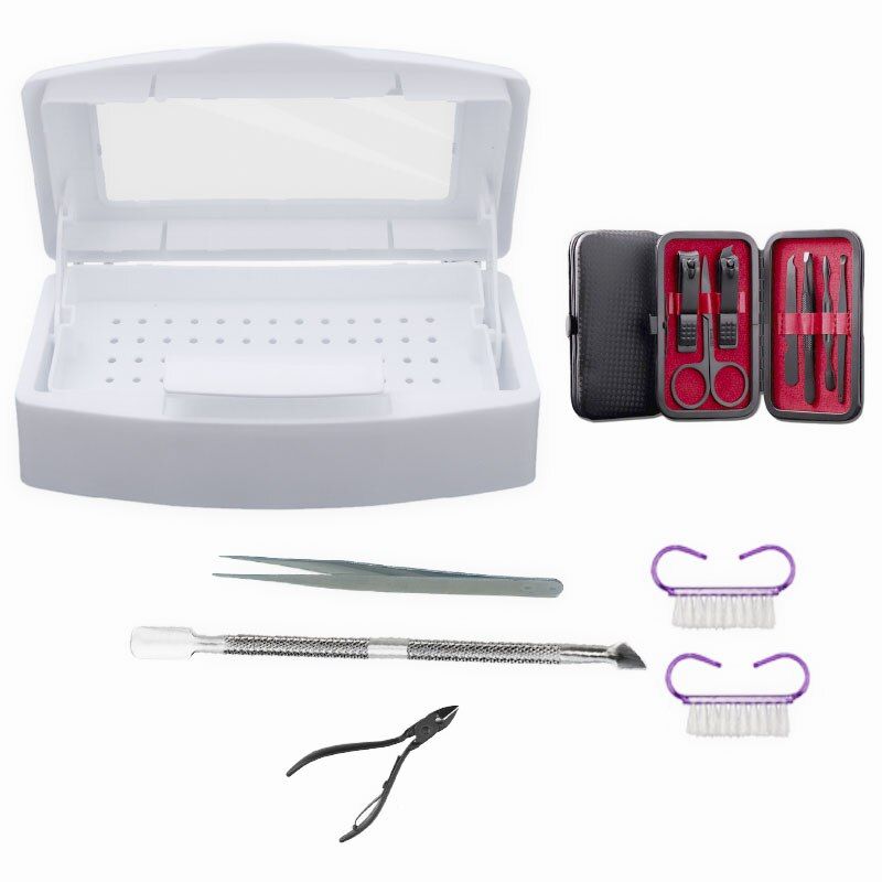 هناك خياران ، يمكنك إما اختيار صندوق تعقيم أو صندوق تعقيم مع أدوات مانيكير المعتادة ، اعتمادا على احتياجاتك