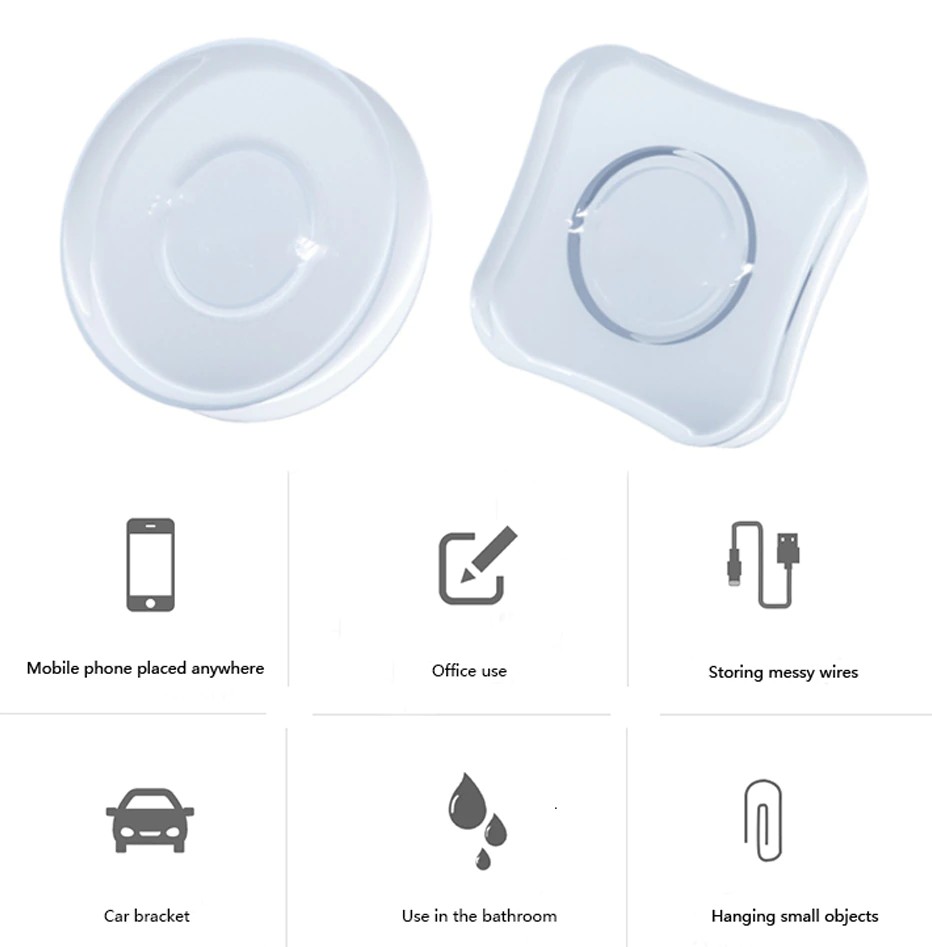 كيفية الاستخدام: إزالة أول طبقة رقيقة واقية والعصا لوحة على السطح واضغط على جميع أنحاء هلام لجعل قبضة أقوى. ثم إزالة الفيلم الثاني ووضع الكائن الذي تريد شل. الأخدود الأوسط يمكن التفاف كابل بيانات أو سماعة السلكية.
