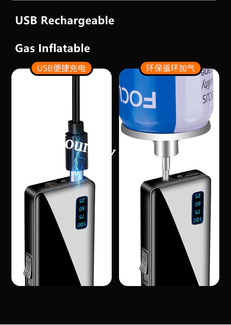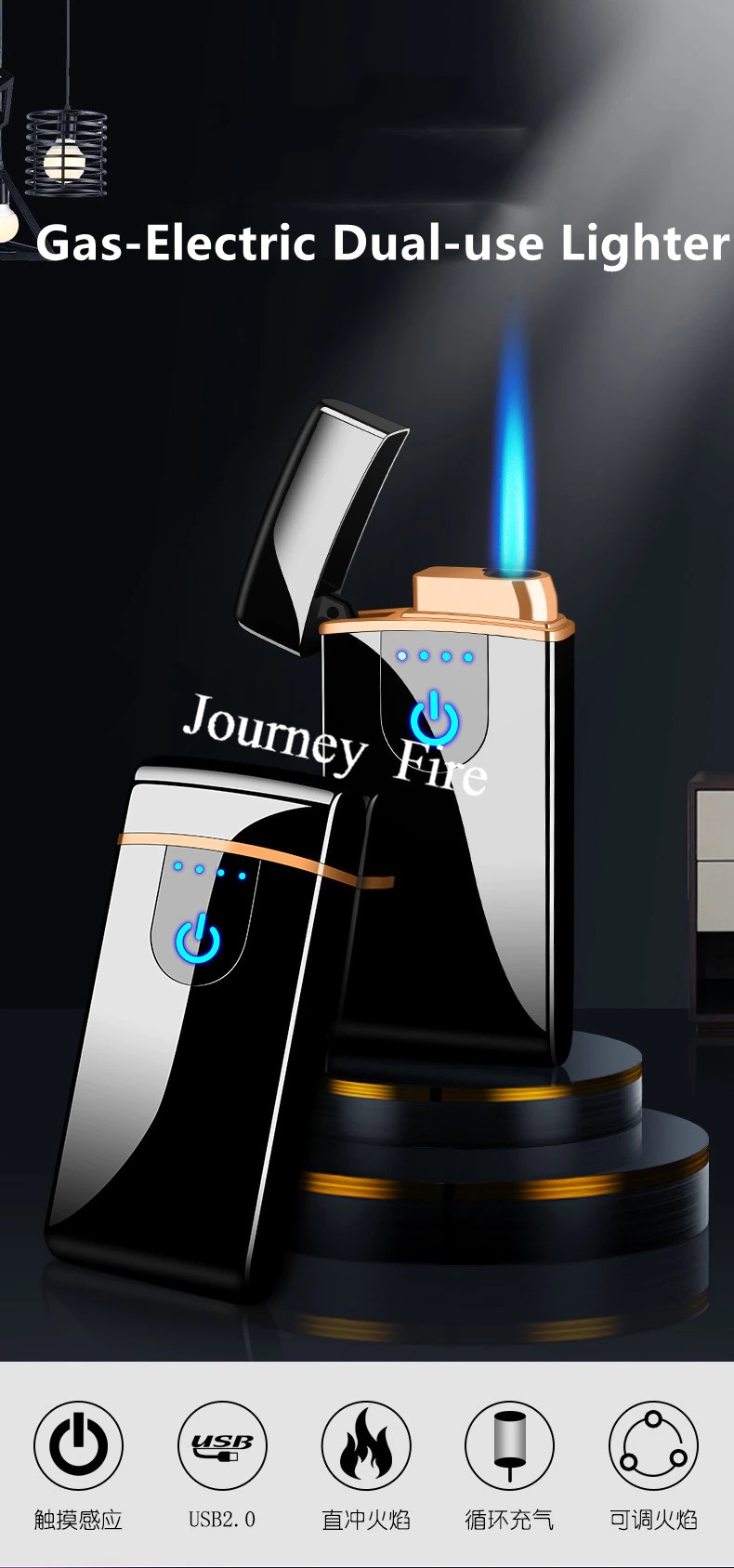 جديد يندبروف المعادن مصباح Usb الشعلة توربو أخف طائرة مزدوجة قوس Led قداحة غاز قابلة للشحن الكهربائية البوتان الأنابيب ولاعة السيجار