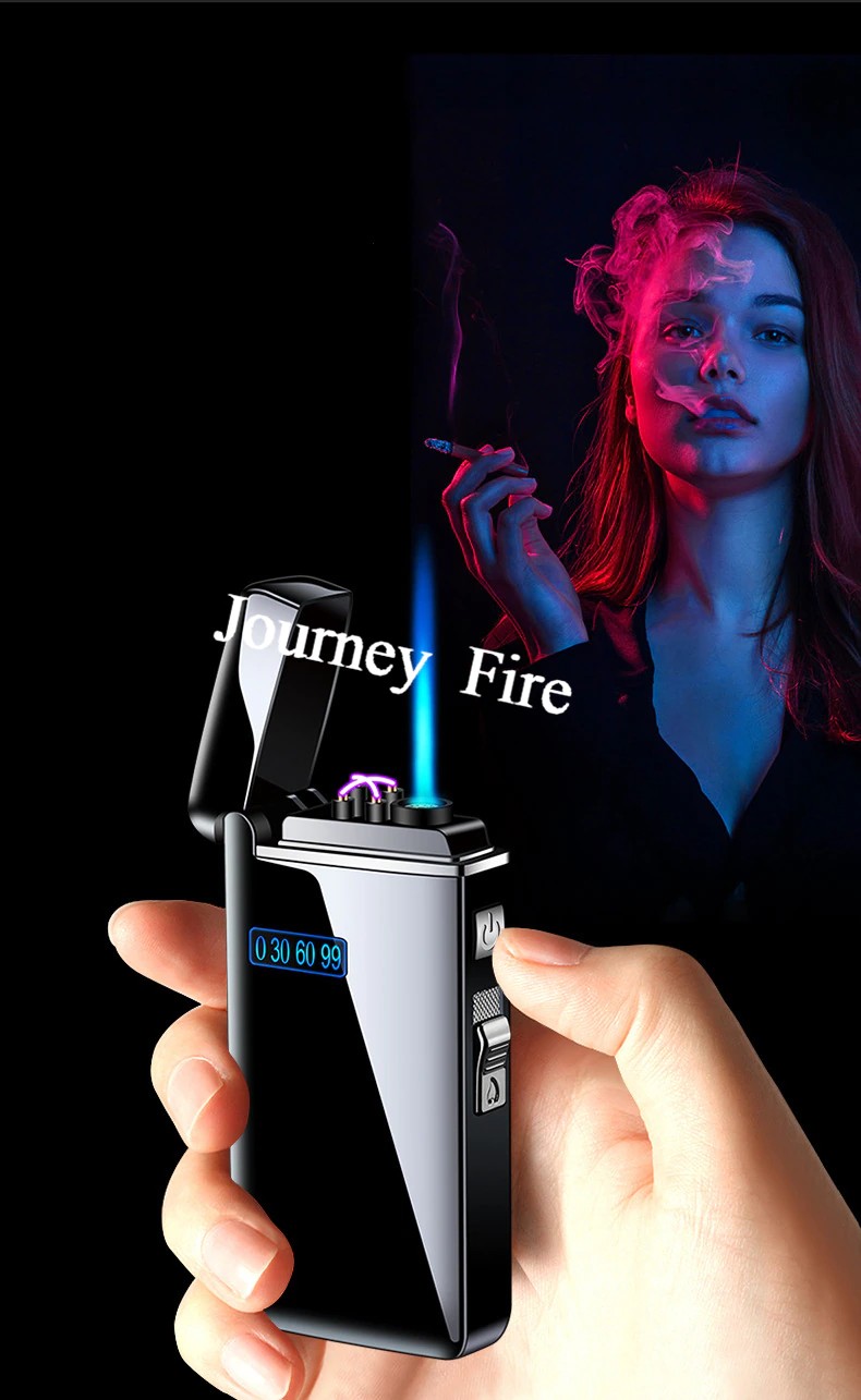 جديد يندبروف المعادن USB الشعلة أخف طائرة توربو المزدوج قوس LED الولاعات الغاز الكهربائية البوتان أنبوب الغاز ولاعة السيجار الأدوات للرجال