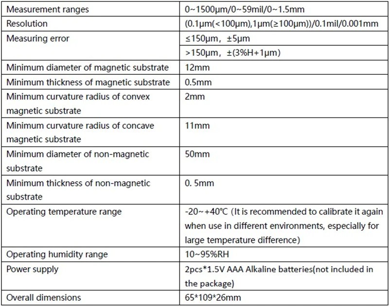 نطاق القياس: 0-1500um/0-59mil/0-1.5mm