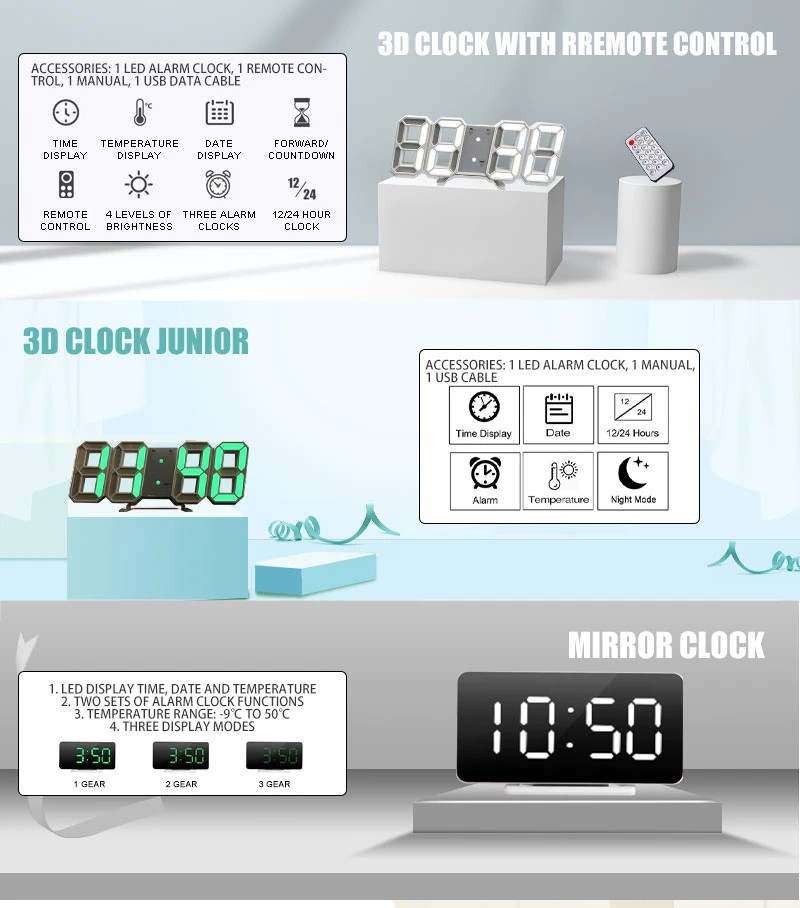 وظيفة: على مدار الساعة للديكور المنزل ، ساعة حائط ، ساعة الطاولة ، ساعة رقمية ، ساعة تنبيه