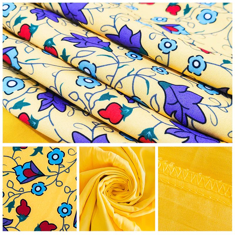 فساتين صيفية نسائية بمقاسات كبيرة ، فساتين جديدة أنيقة بنصف كم مكشكش ومزينة بنقشة الزهور ، فساتين طويلة فضفاضة باللون الأصفر للسيدات