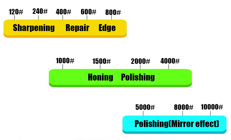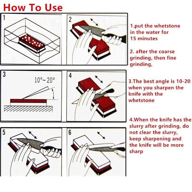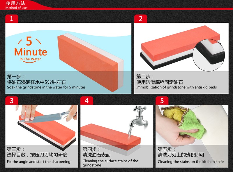الخطوة 1: طحن الخام ، وتستخدم لإصلاح حواف التالفة بشدة والشيخوخة ، ومناسبة للسكاكين مملة. عقد السكين بزاوية 10-30 درجة ، وطحن بلطف الحافة ذهابا وإيابا على سطح الحجر حتى الحافة حادة بما فيه الكفاية. بعد شحذ السكاكين ، مطلوب طحن الخام وشحذ في نصف عام. كما يعتمد ذلك على الوضع المحدد.