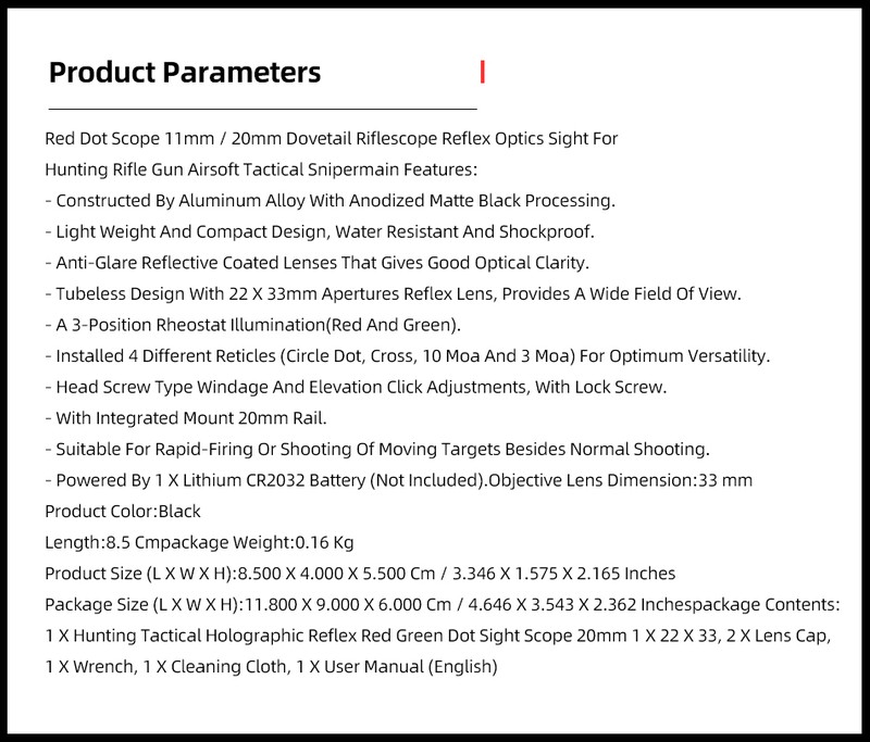 اسم العنصر: Red Dot Air Soft Rifle Scope Sight ، Optics Reflex Riflescope
