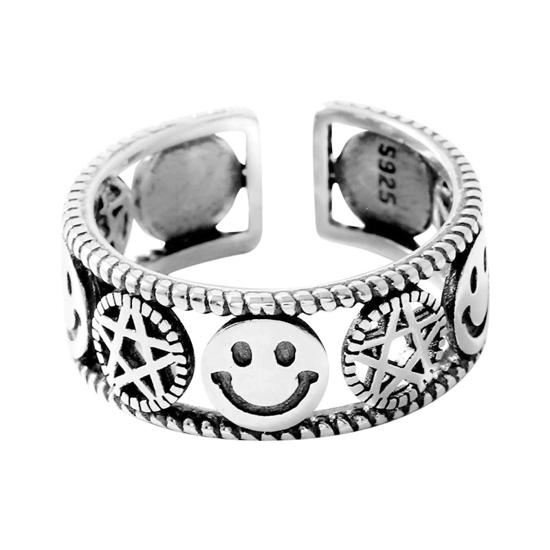 خاتم للنساء الفتيات ثعبان ابتسامة موضة الرجال المجوهرات Vintage الفضة القديمة اللون الشرير الهيب هوب قابل للتعديل بوهو الضفدع