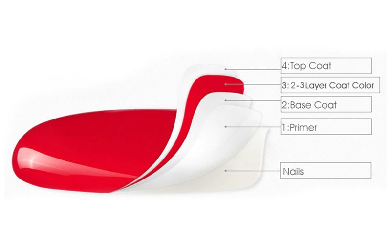 -2. تطبيق معطف قاعدة من الأساس من بشرة إلى الحافة الحرة (تذكر لإغلاق حافة الظفر). علاج الأظافر تحت مصباح ليد لمدة 10 ثانية أو ضوء الأشعة فوق البنفسجية لمدة 2 دقيقة.
