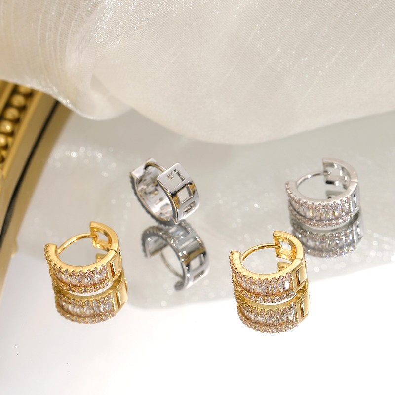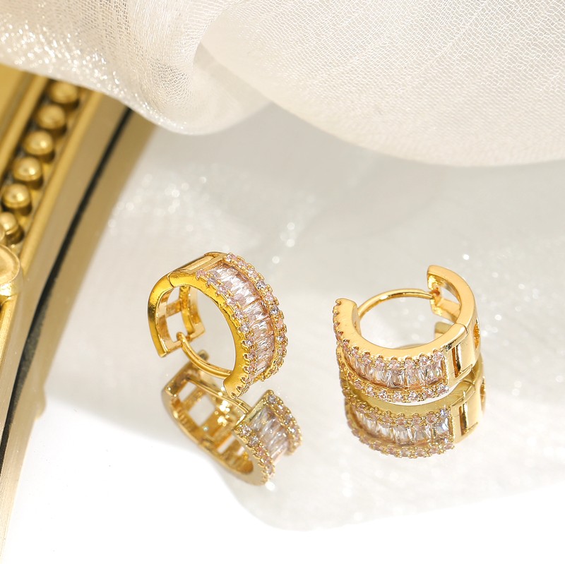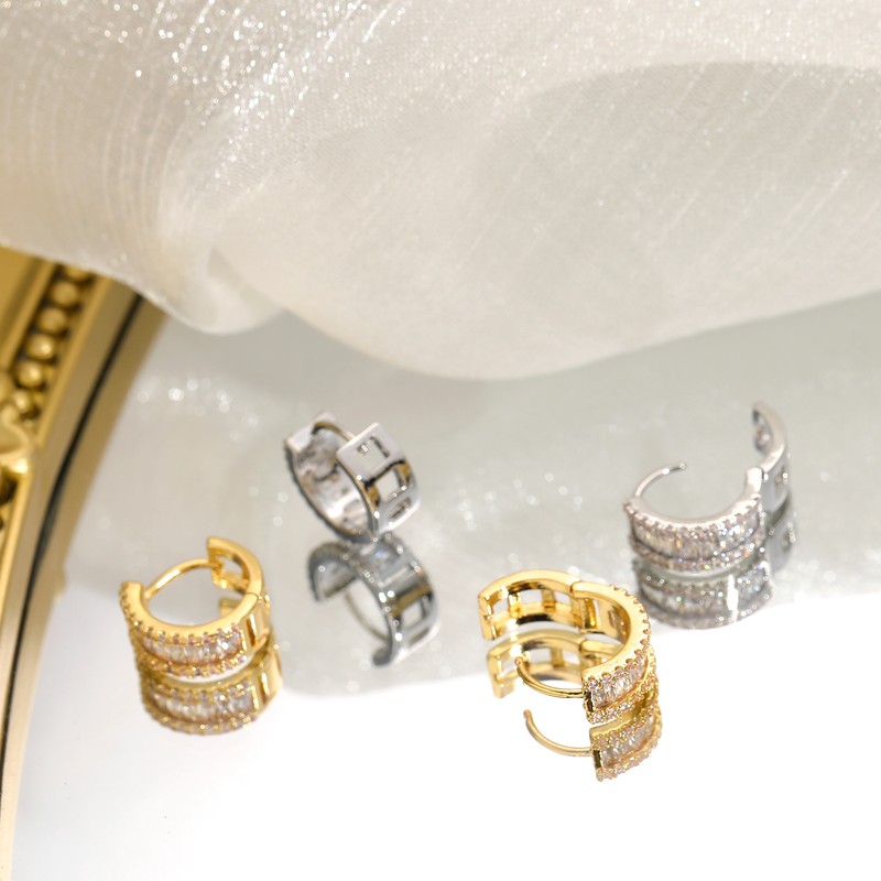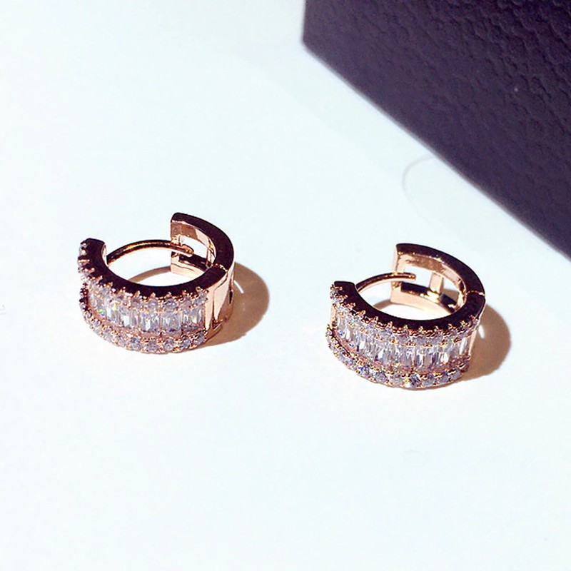 Juwang الجولة الجديدة سوبر مايكرو مطعمة حجر الراين مزاجه الأذن مربط الحد الأدنى الفاخرة للنساء الزفاف أقراط قلادة مجوهرات