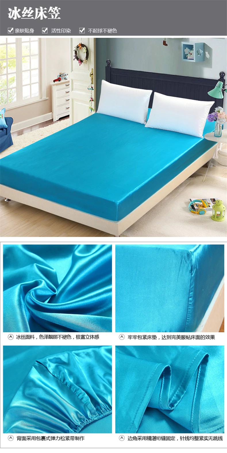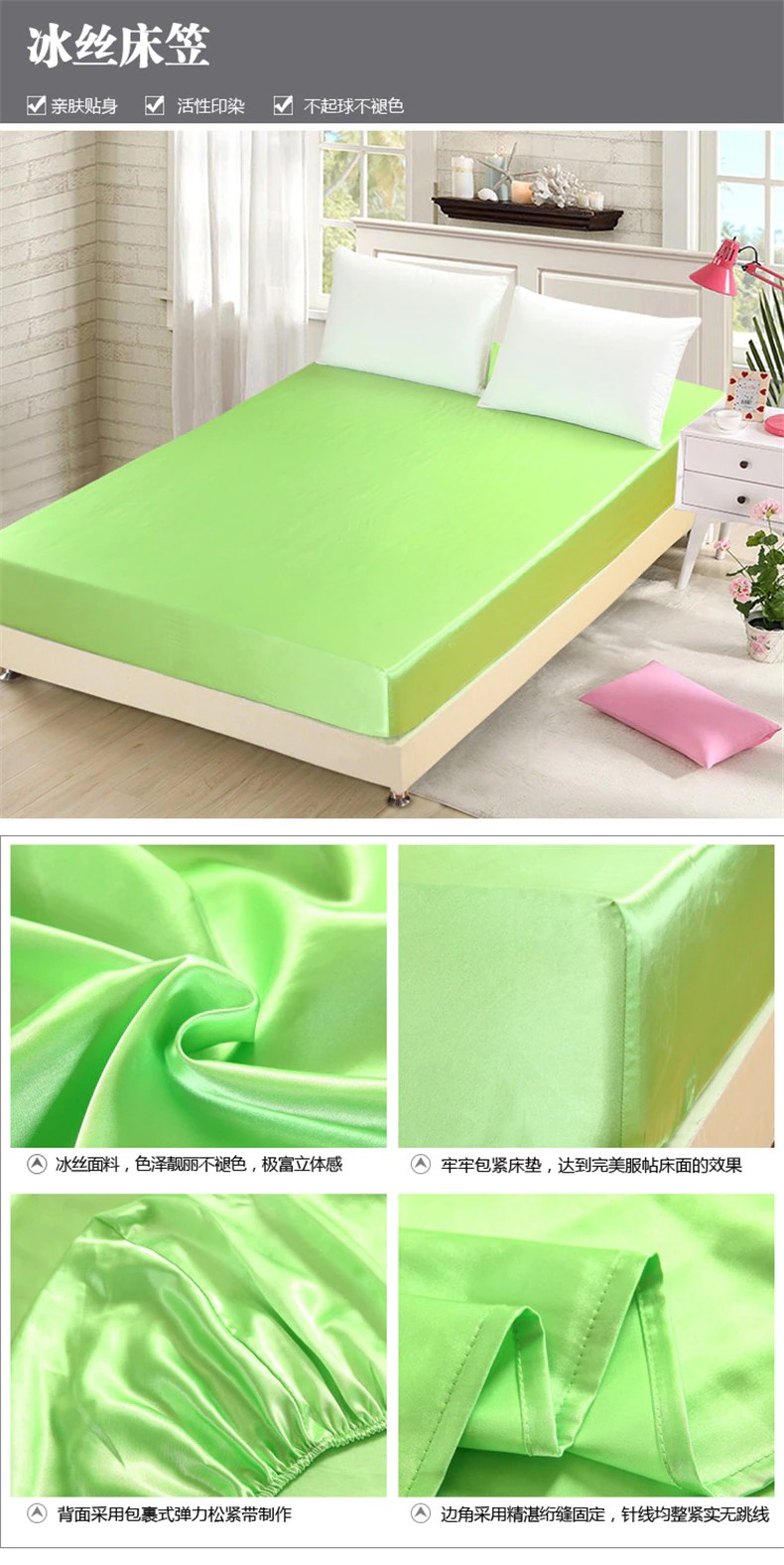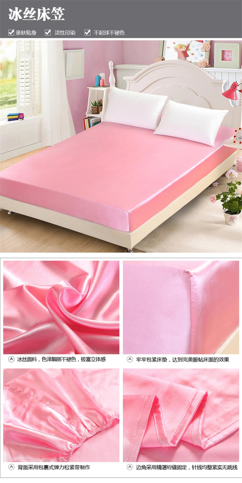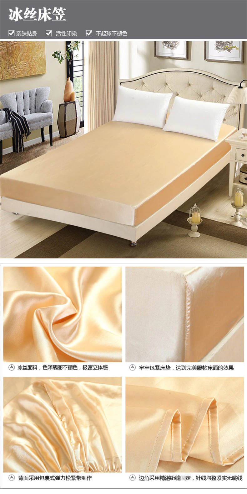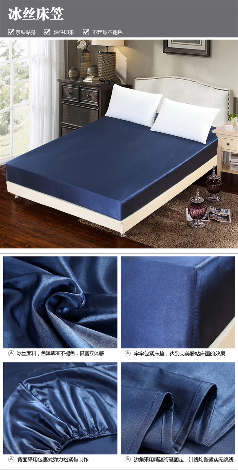 الحرير الساتان المجهزة ورقة الراقية بلون غطاء مرتبة شريط مرن غطاء سرير ملاءات 160X200