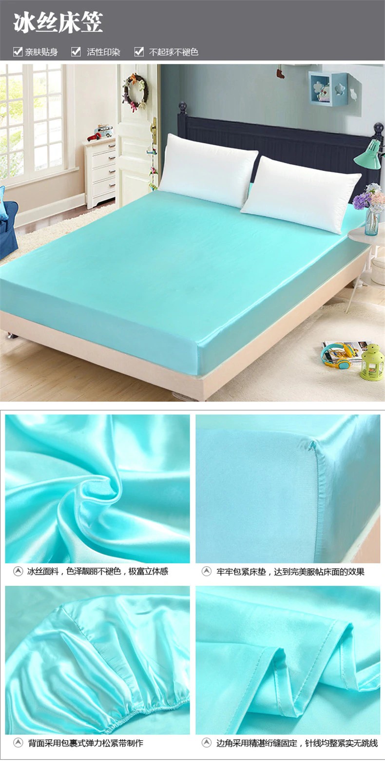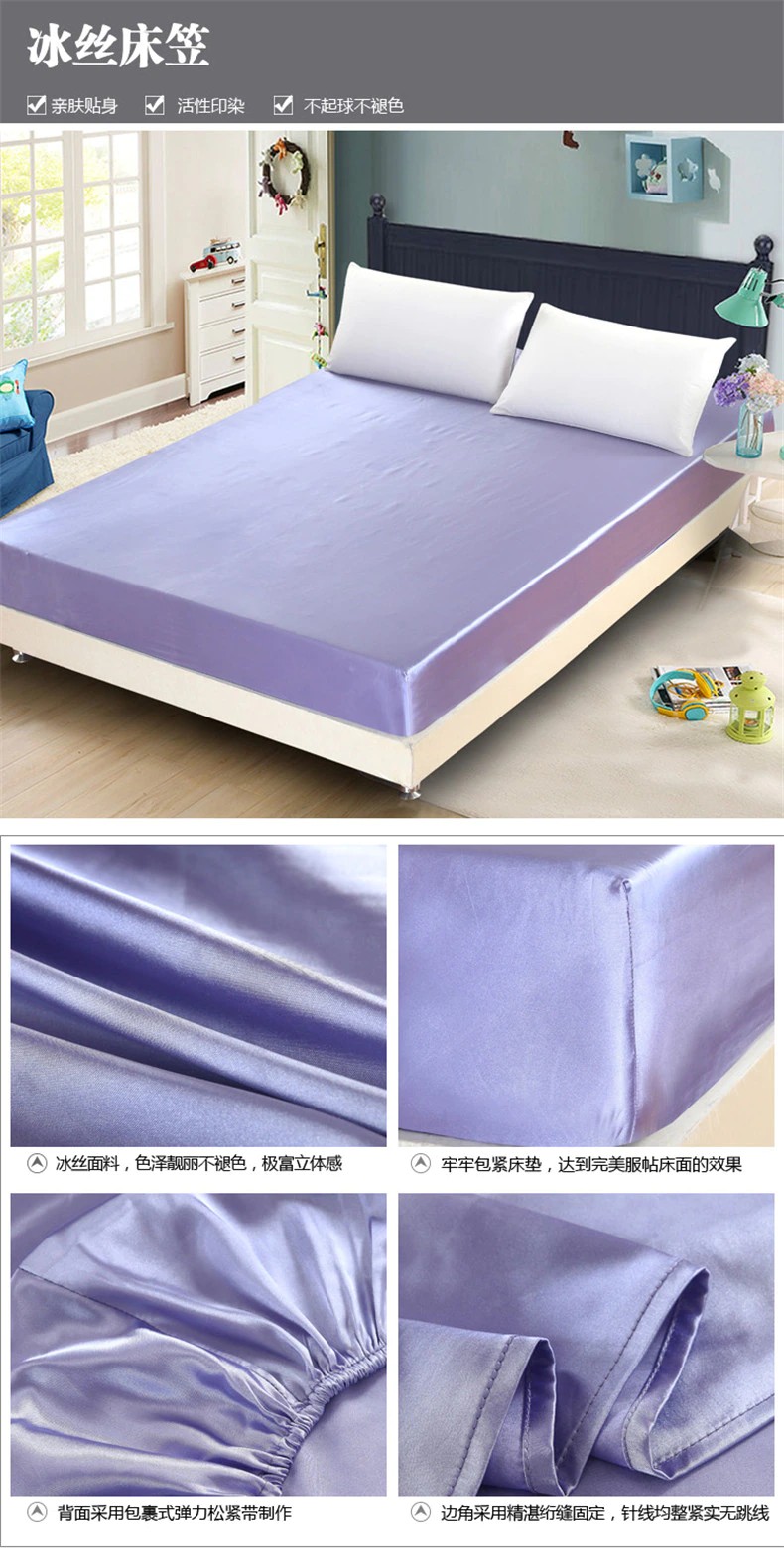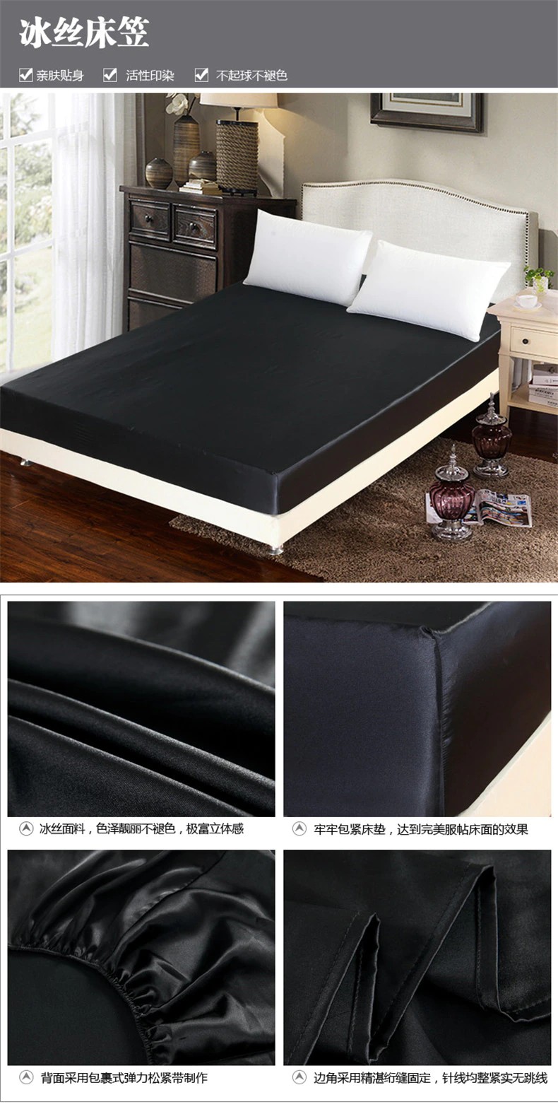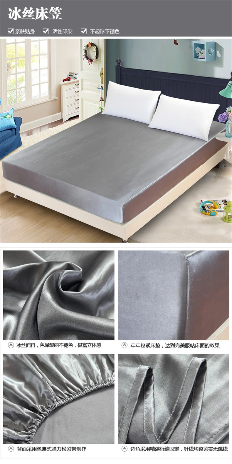 الحرير الساتان المجهزة ورقة الراقية بلون غطاء مرتبة شريط مرن غطاء سرير ملاءات 160X200