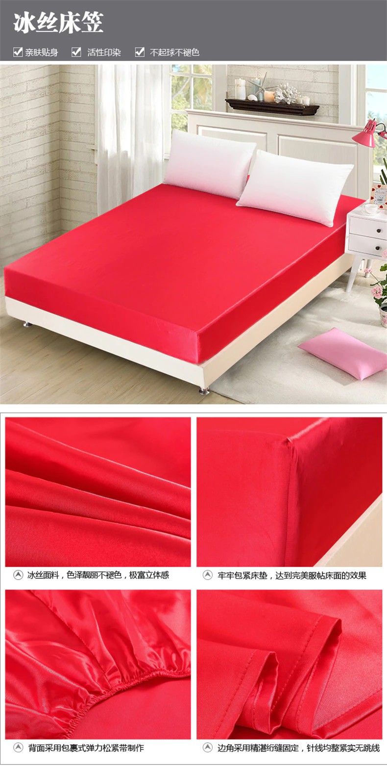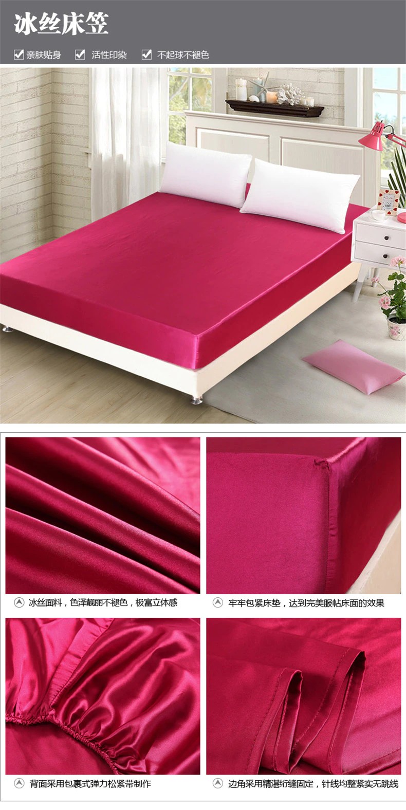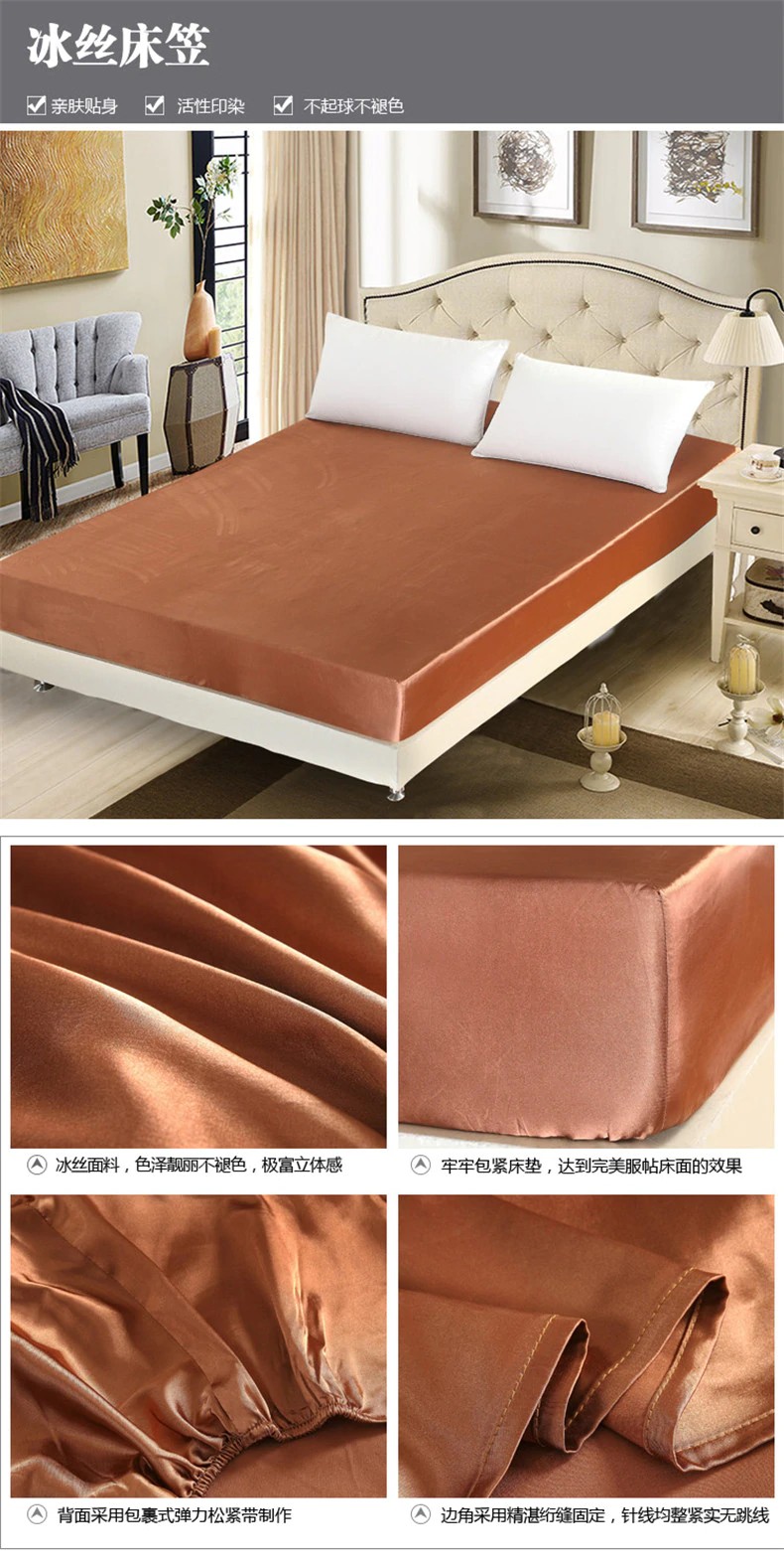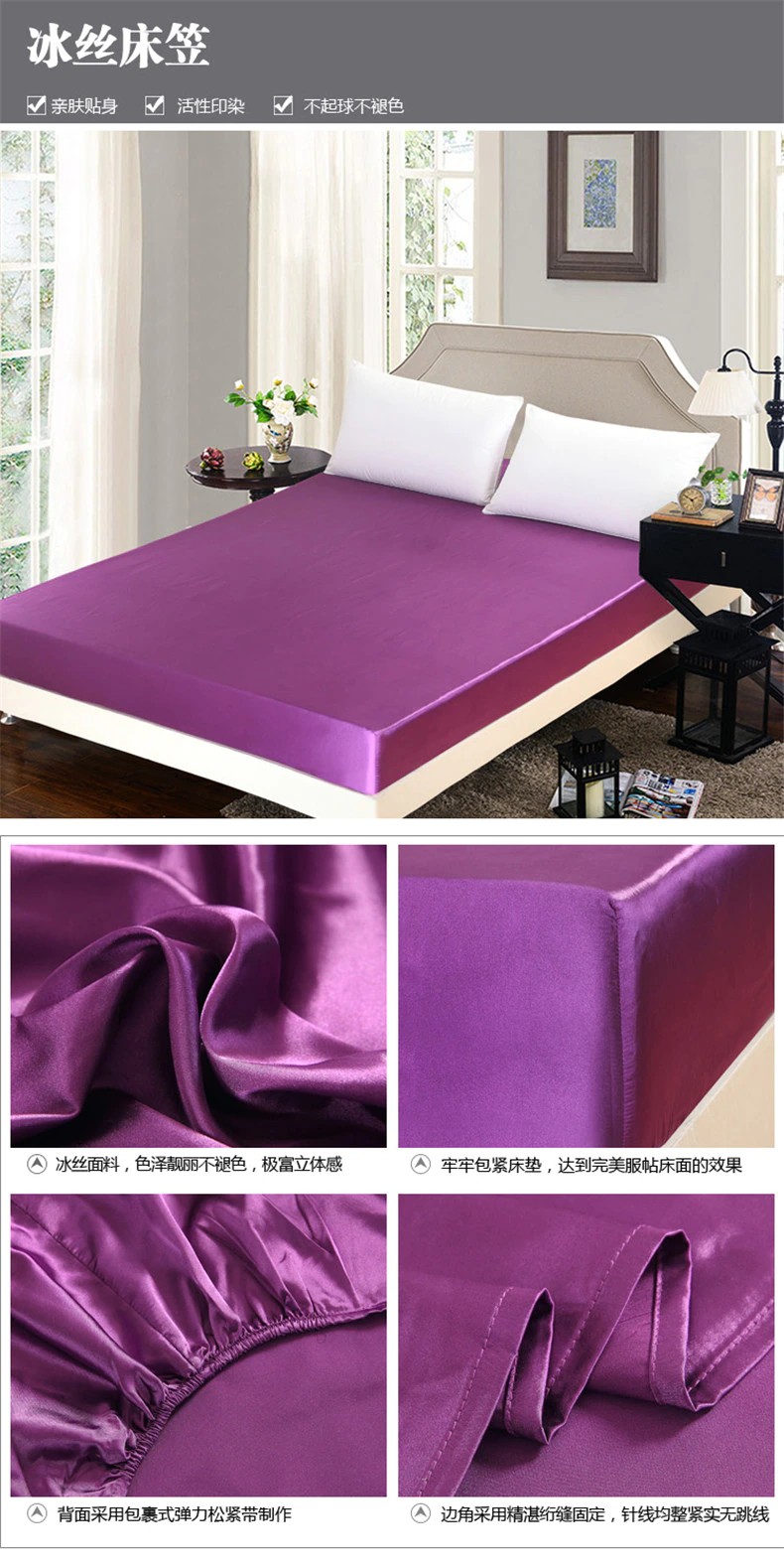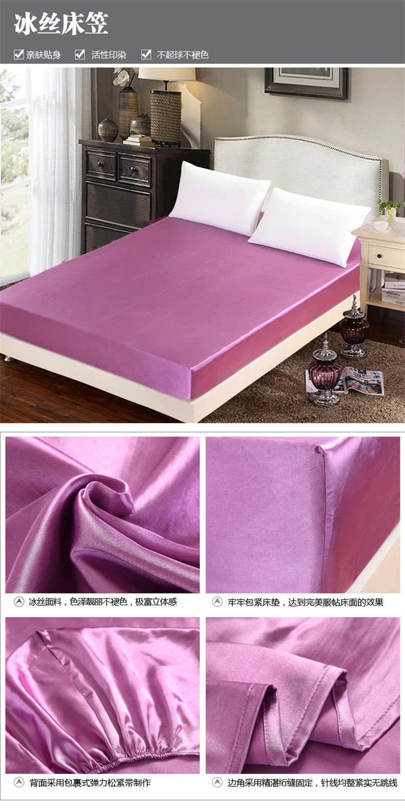 الحرير الساتان المجهزة ورقة الراقية بلون غطاء مرتبة شريط مرن غطاء سرير ملاءات 160X200