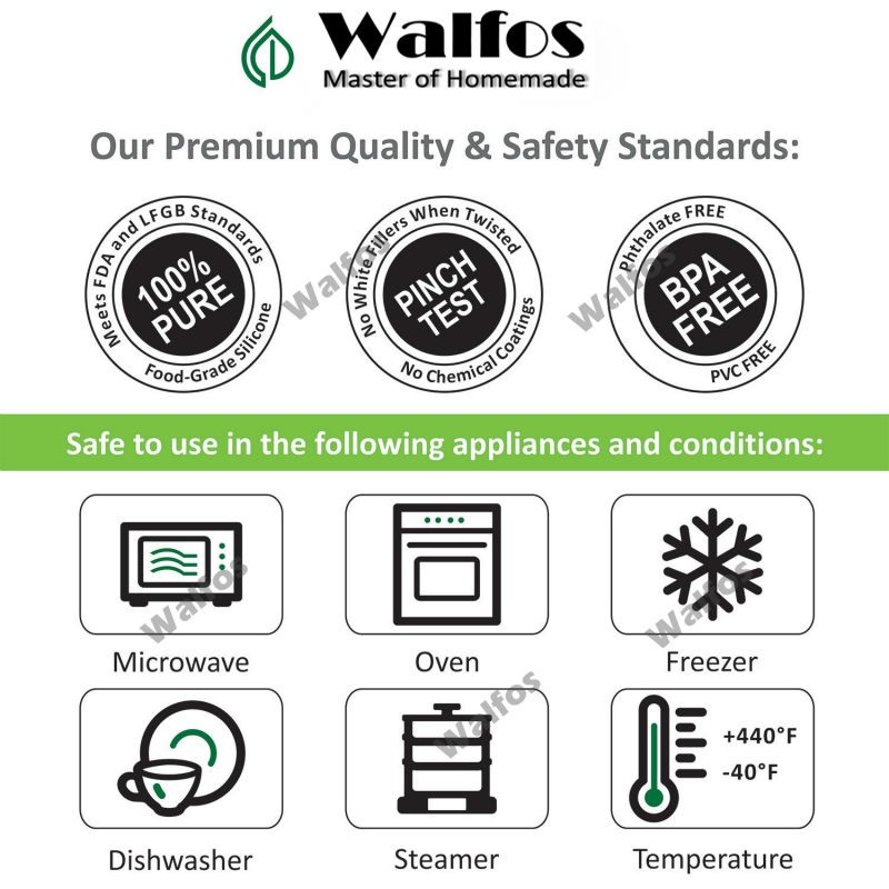 Our silicone material is the same as silicone babypacifier! Why we use this high quality silicone? Because it is safe for poeple to use it in oven,fridge and our health. Hope yourfamily love and enjoyWALFOS high quality silicone product.