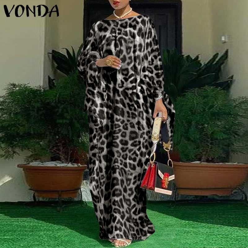 فستان قفطان نسائي الأحدث فستان ماكسي طويل مطبوع عليه الفهد من فوندا فستان طويل غير رسمي بأكمام طويلة مطوي فيستدو مقاس كبير