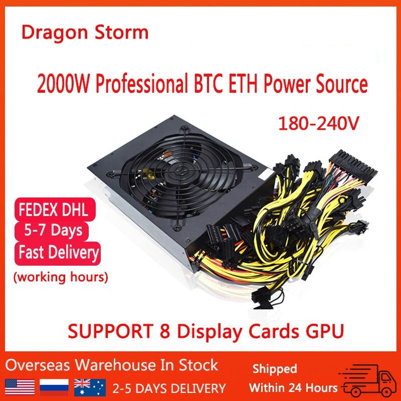 Fuente De Alimentación Atx De 2000W Para Minería, Fuente Alimentación Para Todo Tipo Gráficos, Conectable 8Gpu 95% De Eficiencia Bitcoin Ethereum Mining, Psu