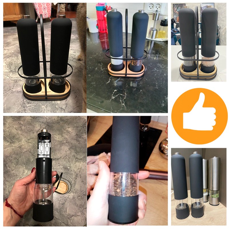 自動塩コショウ,電気,プラスチック,セラミック,香辛料,台所用品用の調整可能なバリミルのセット
