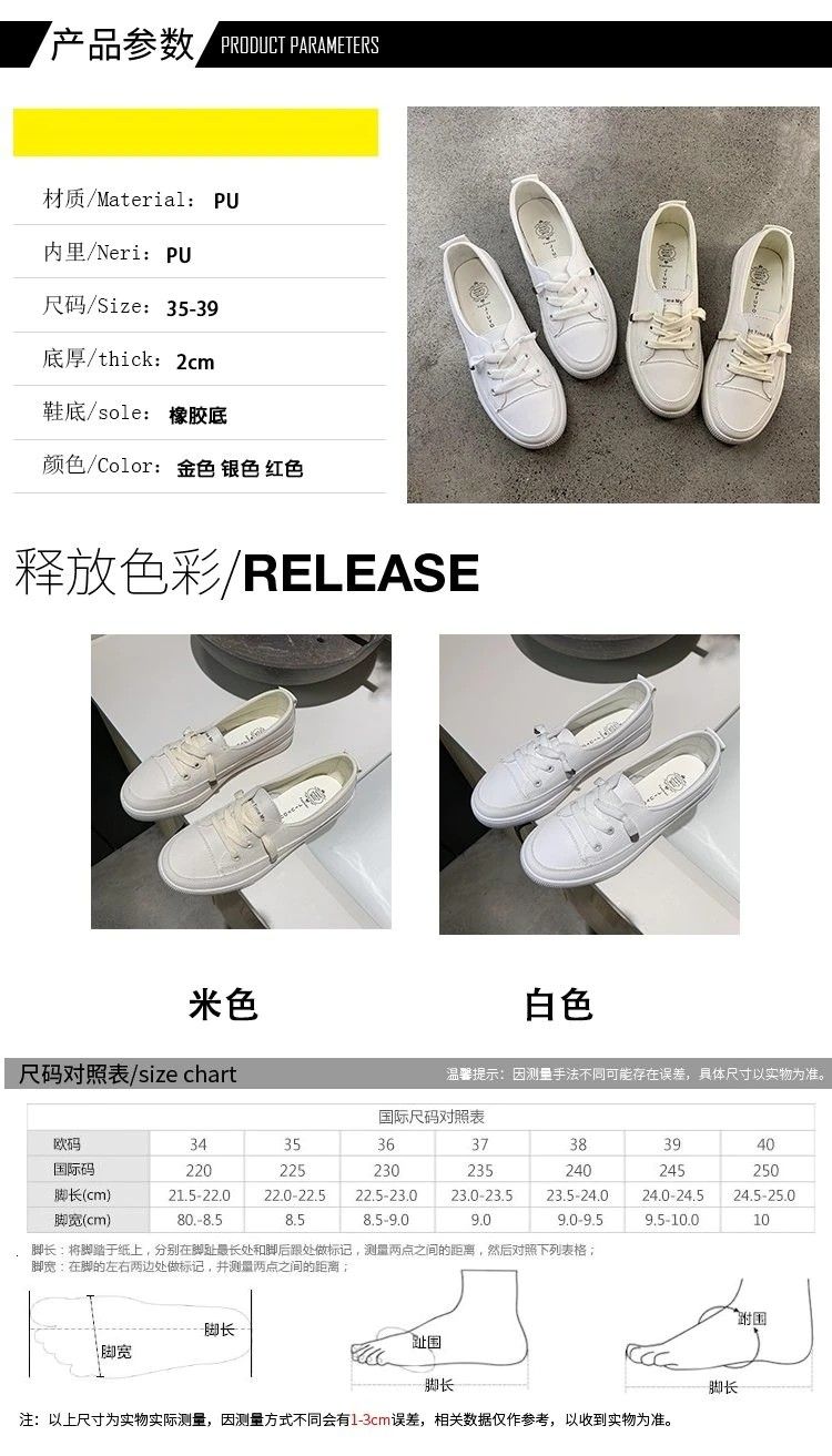 Autumn Women'S Shoes Fashion New Women'S Pu Leather Shoes Women'S Breathable Lovely Flat Sole Casual White Sports Shoes