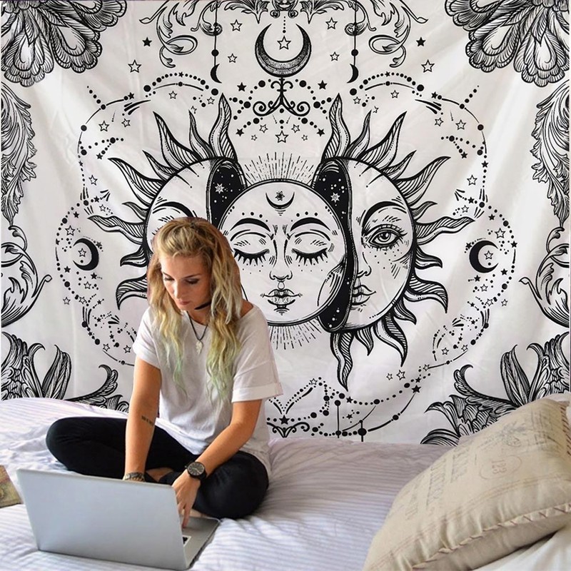 Belle Tapisserie Murale À Impression Psychédélique Pour Décoration, Tableau Bohème, Style Hippie Tapis De Décor Artistique Pour Mur Mandala, Bon Marché