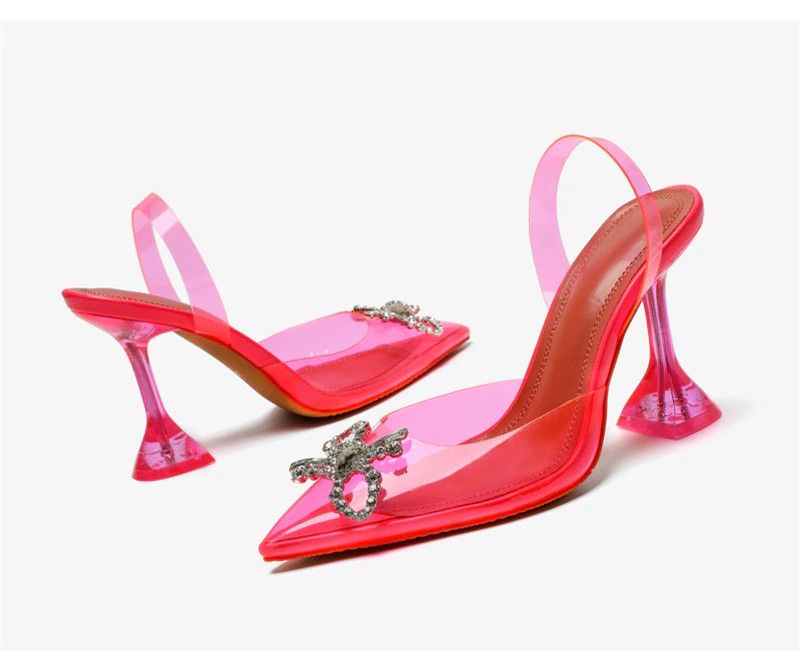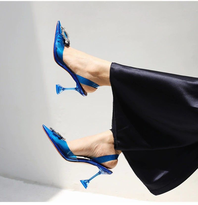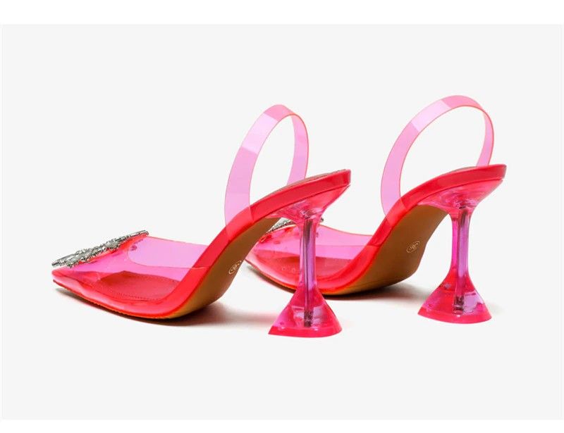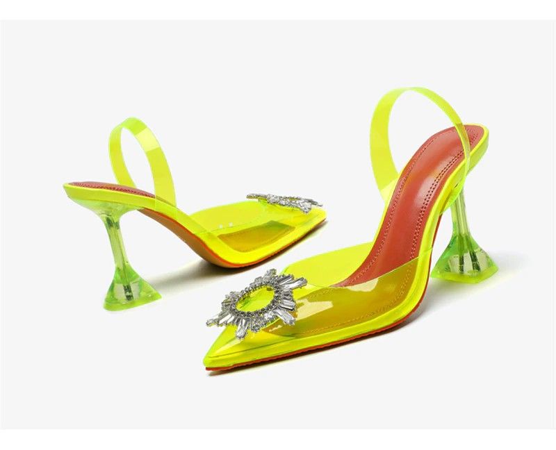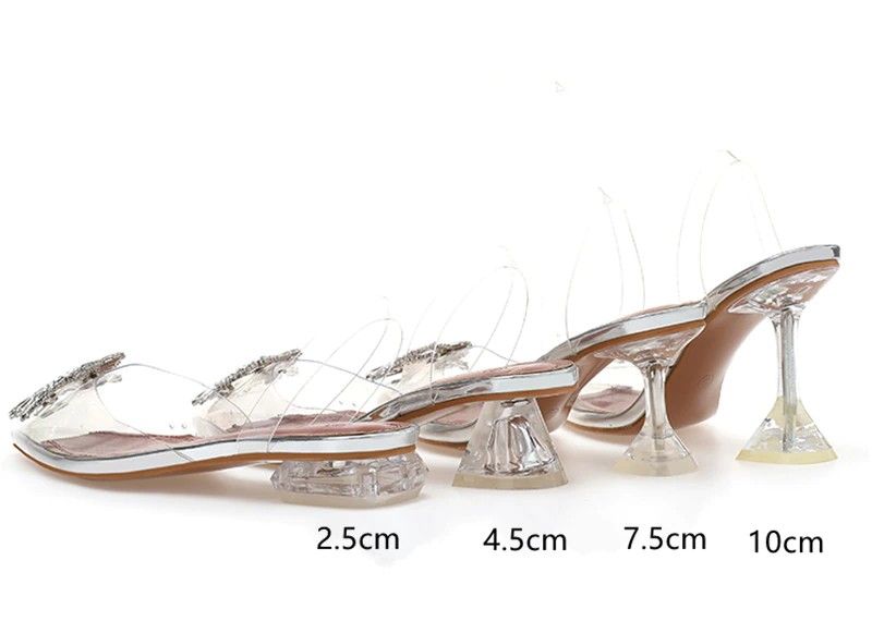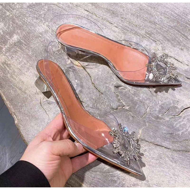 Sandalias de mujer de estilo estrella elegantes con punta puntiaguda, tacones altos, zapatos de boda, Sandalias de tacón transparente