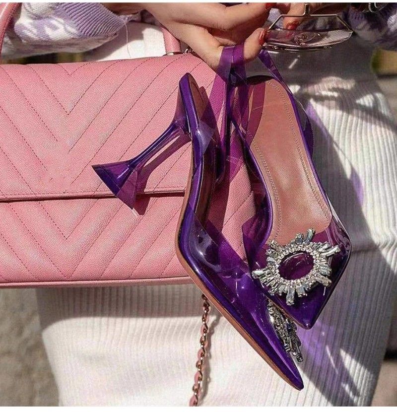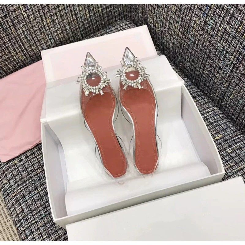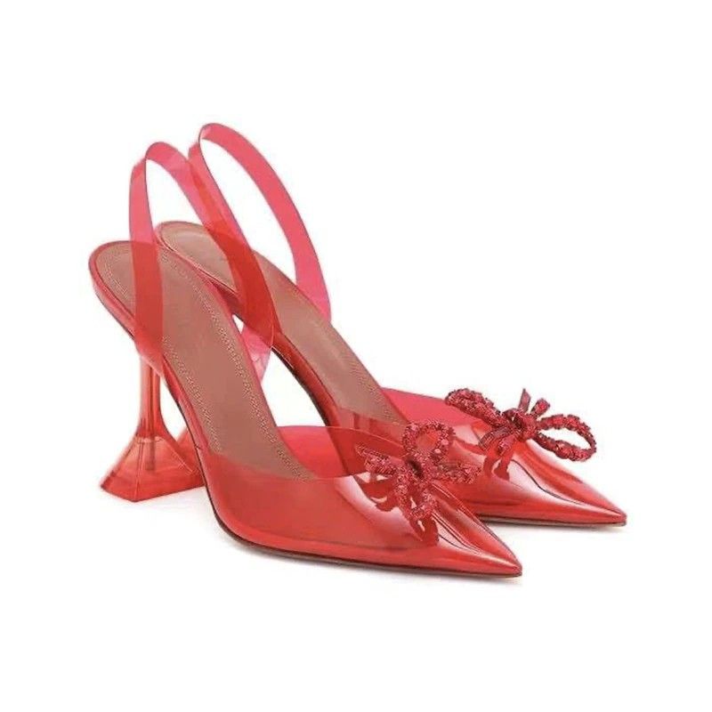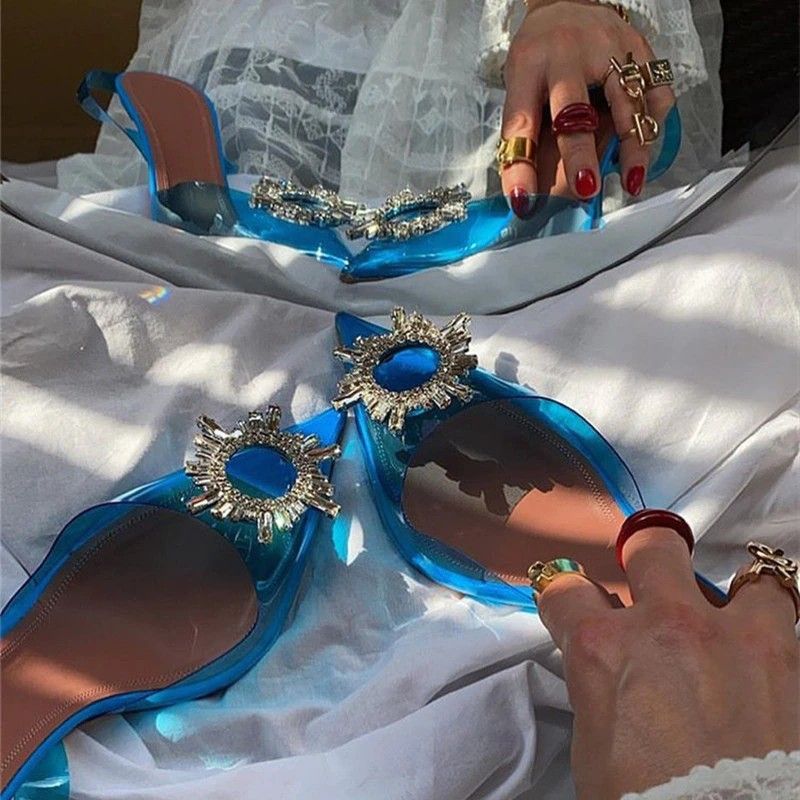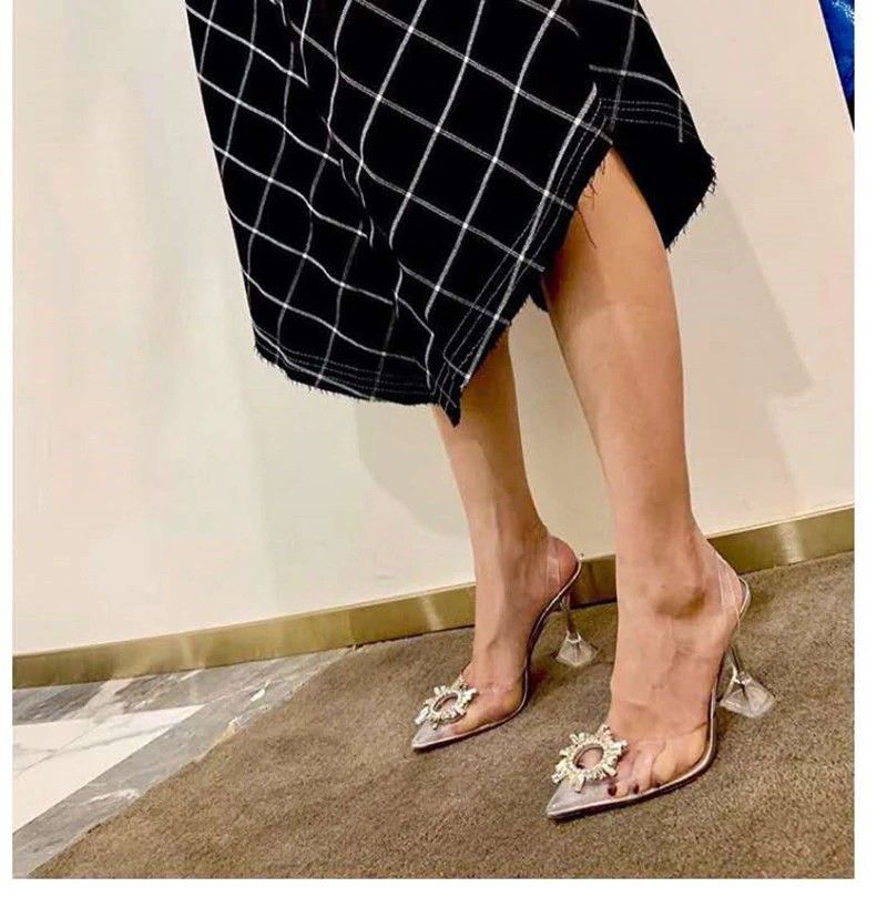 Sandalias de mujer de estilo estrella elegantes con punta puntiaguda, tacones altos, zapatos de boda, Sandalias de tacón transparente