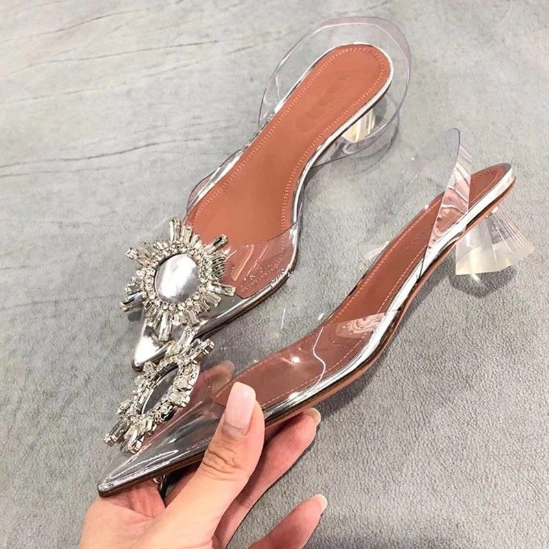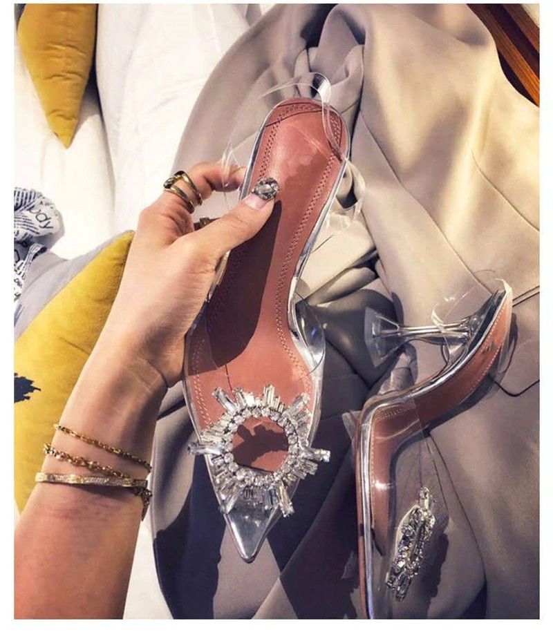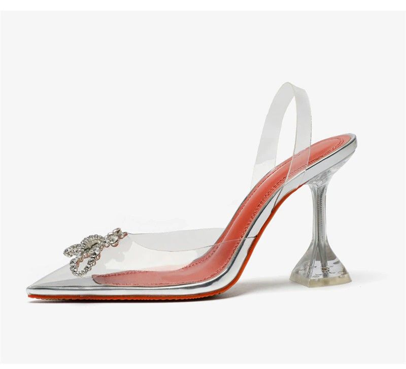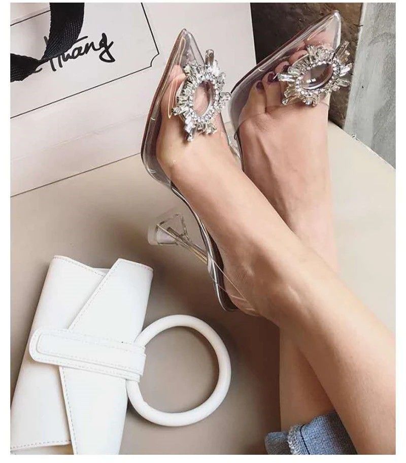 Zapatos De Tacón Alto Con Diamantes De Imitación Para Mujer, Sandalias Elegantes Con Punta Puntiaguda, Tacón Transparente Para Boda, Talla Grande 44 45