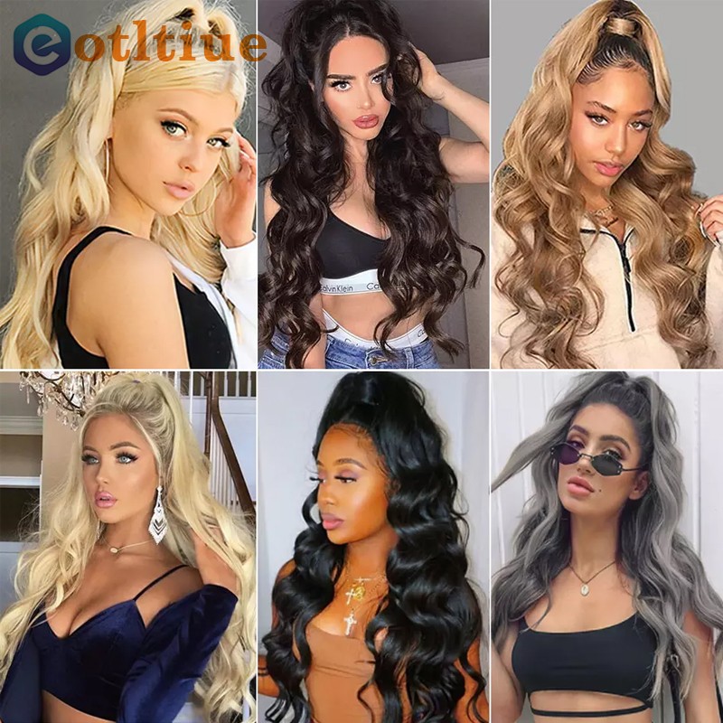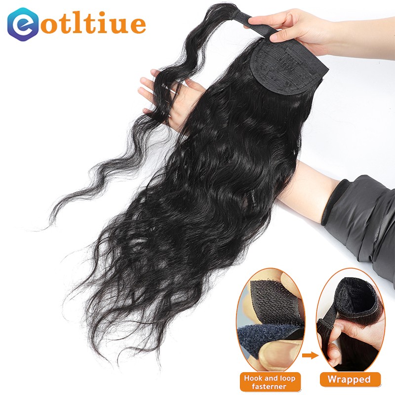 شعر مموج طويل مموج التفاف حول كليب في ذيل حصان الشعر التمديد البرازيلي ريمي الشعر البشري اللون الطبيعي مقاومة للحرارة ذيل حصان