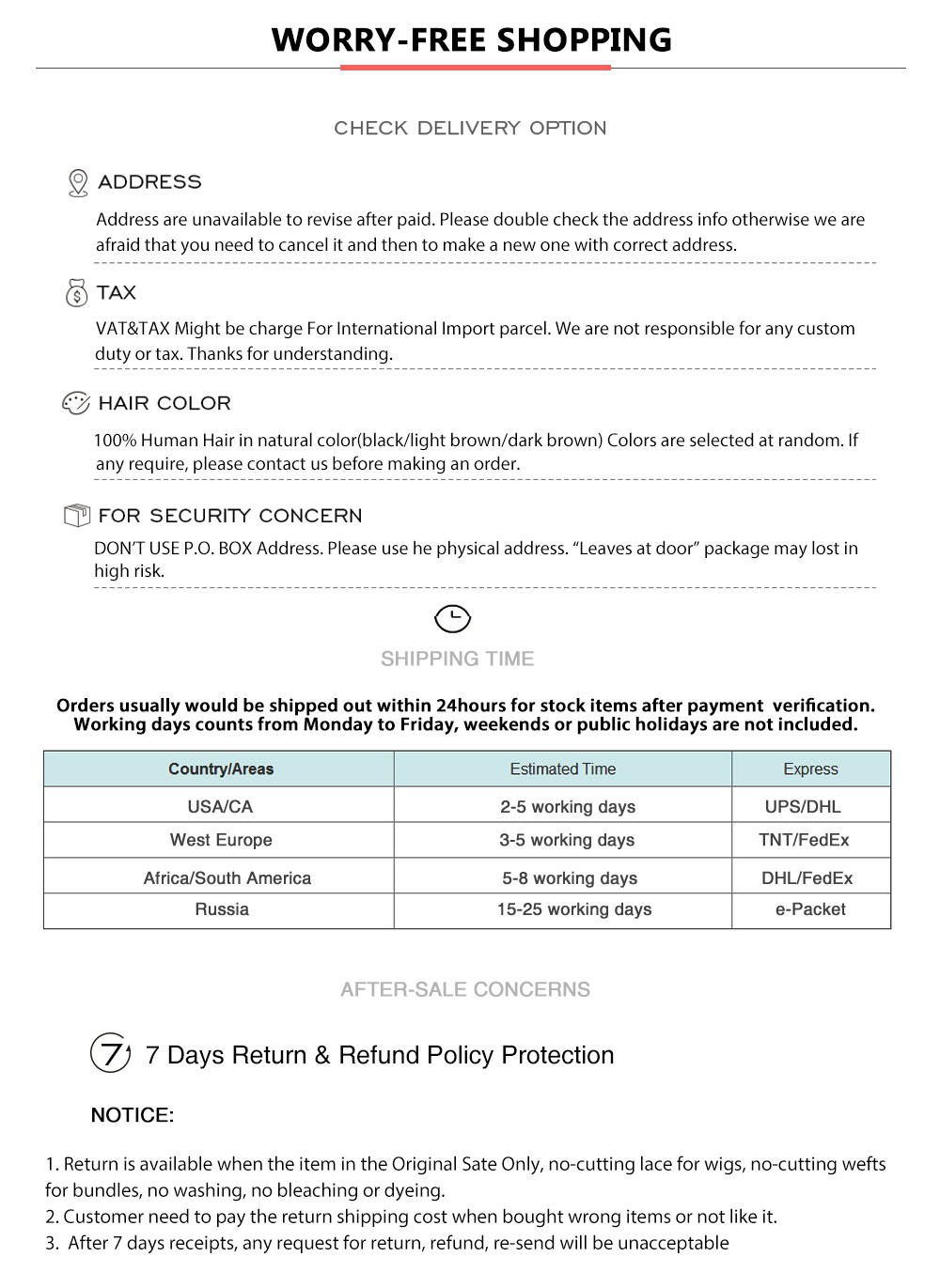 Entrega: DHL/Fedex/TNT, alrededor de 2 ~ 4 días hábiles a EE. UU., 2 ~ 5 días hábiles a Euro, 4 ~ 7 días hábiles a África después del envío