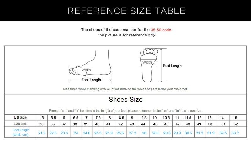 당신이 순서를 만들기 전에, 당신은 (발 뒤꿈치에서 발끝까지) 당신의 발 길이를 측정하기 위하여 주의해야 하고 그 후에 당신은 우리의 크기 테이블에 더 많은 관심을 지불해야 합니다. 당신은 우리의 크기 테이블에서 당신을 위한 적당한 크기를 찾아낼 수 있습니다. 마지막으로, 당신은 당신이 사는 크기를 결정합니다.