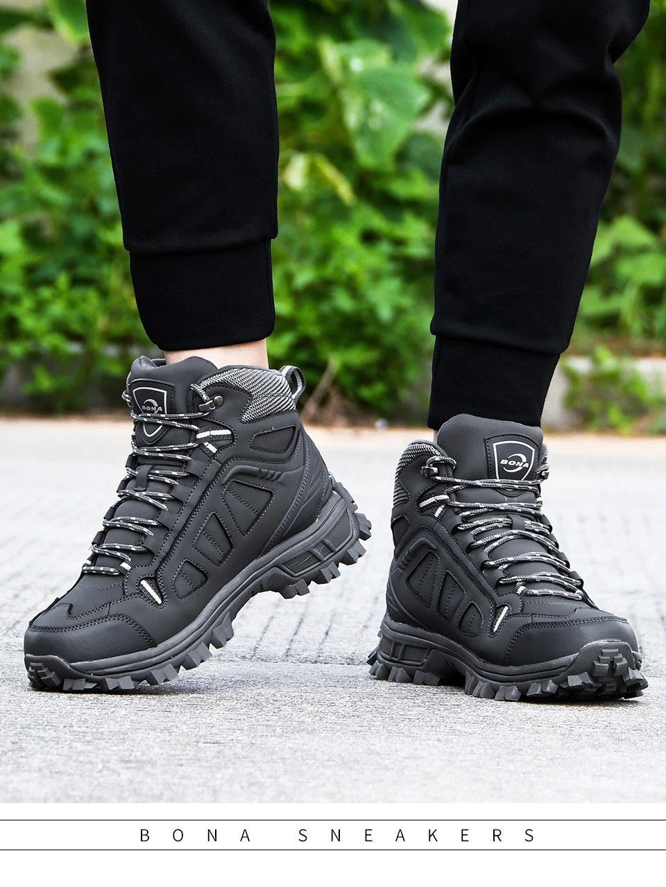 Bona Di Elaborazione Di Nuovi Designer Spaccato Della Mucca Stivali Caldi Degli Uomini Modo Alta Scarpe Da Tennis Superiori Di Sesso Maschile Inverno Botas Hombre Scarpe Stivali Da Neve Confortevole