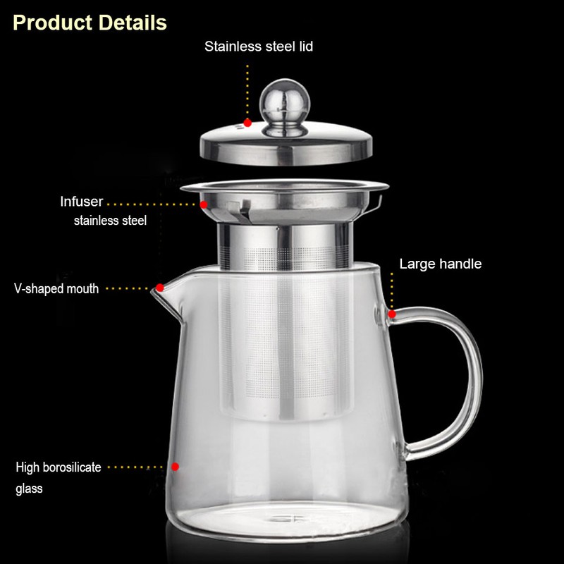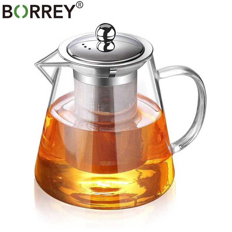 BORREY Tea Infuser Pot Heat-resistant Glass Teapot Cup With Filter Flower Tea Pot Oolong Puer Kettle Glass Coffee Tea Pot 1300Ml