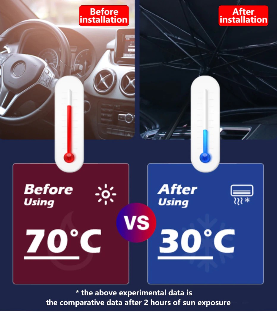 1. Fatto di è fatta di alta durezza acciaio inox, questa vettura ombrello parasole è il calore di isolamento, UV blocco e affidabile da utilizzare per lungo servizio