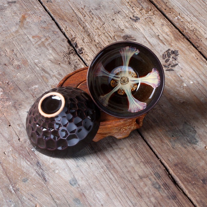 Keramik Tee Tasse Porzellan Tee Schüssel Teegeschirr Ofen Ändern Gebürstet Farbe Dot Gold Glasur Master Hut Tee Tasse Set Kung Fu Tee-Set Tasse