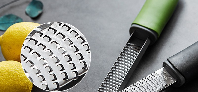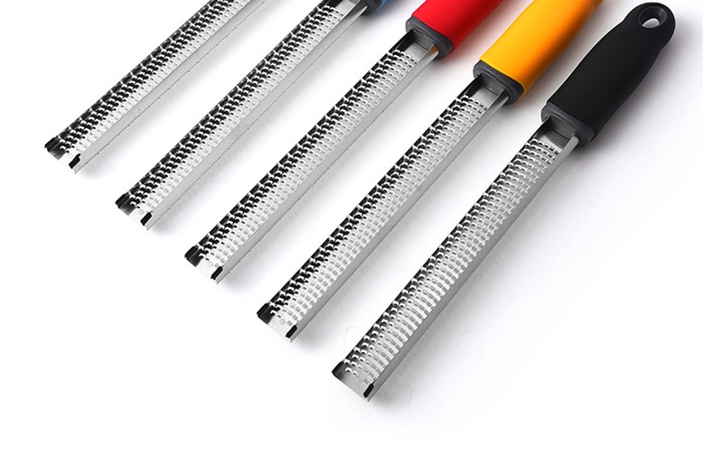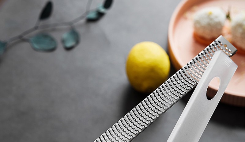 4。Zesting & gratingはこれまでになくシンプルですほとんど圧力をかけずに、最も硬いチーズをすりおろした綿毛に入れます。 カッターナイフをオレンジ、レモン、ライムの縁にジッパーで留めるだけです。 数秒で、ニンニクや生姜を細かくすりおろしたり、ふわふわのチョコレートフレークをトッピングしたお気に入りのデザートをお楽しみください。