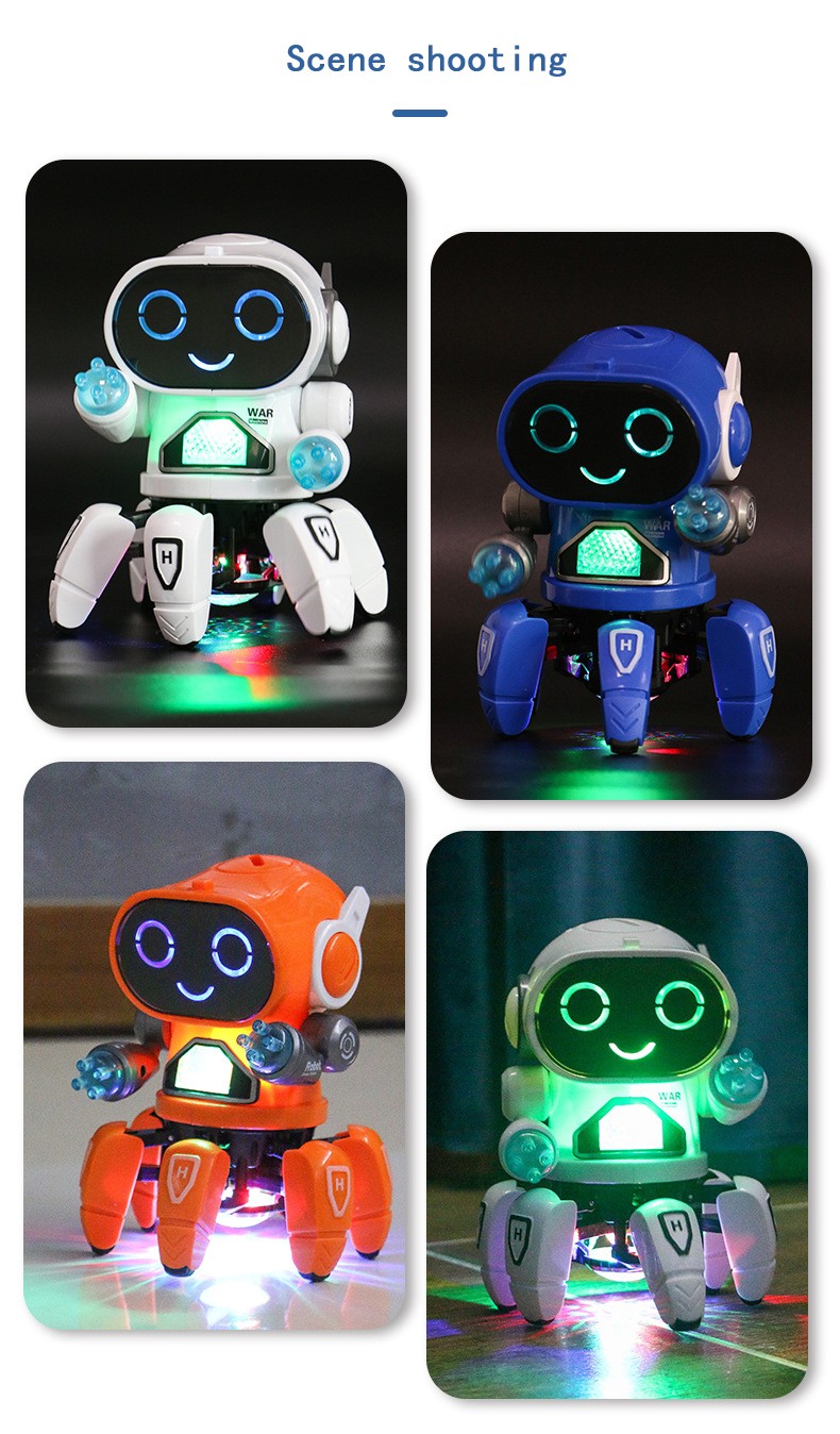 Avertissement: utiliser sous la surveillance du gardien Fonctions: avant, arrière, rotation, bras oscillant, musique, éclairage. Pas de télécommande, démonstration automatique. Belle modélisation, musique dynamique et pas de danse dynamiques conviennent aux enfants âgés de 1 à 6 ans
