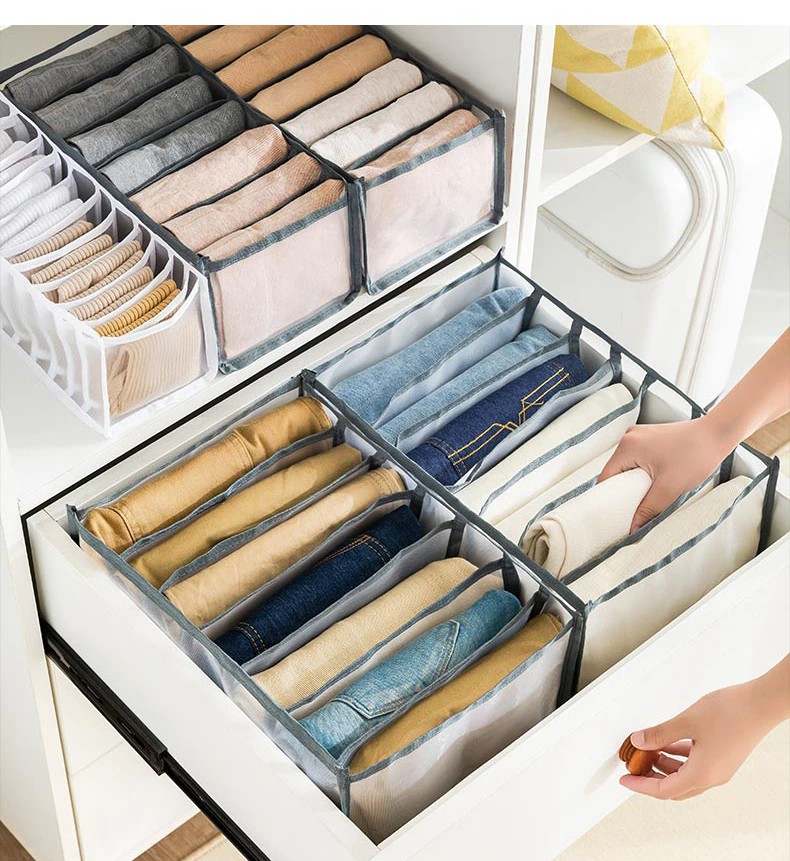 نظيفة وصحية الجينز مقصورة صندوق تخزين خزانة الملابس درج شبكة التقسيم بنطلون التقسيم المنزلية تخزين الرف