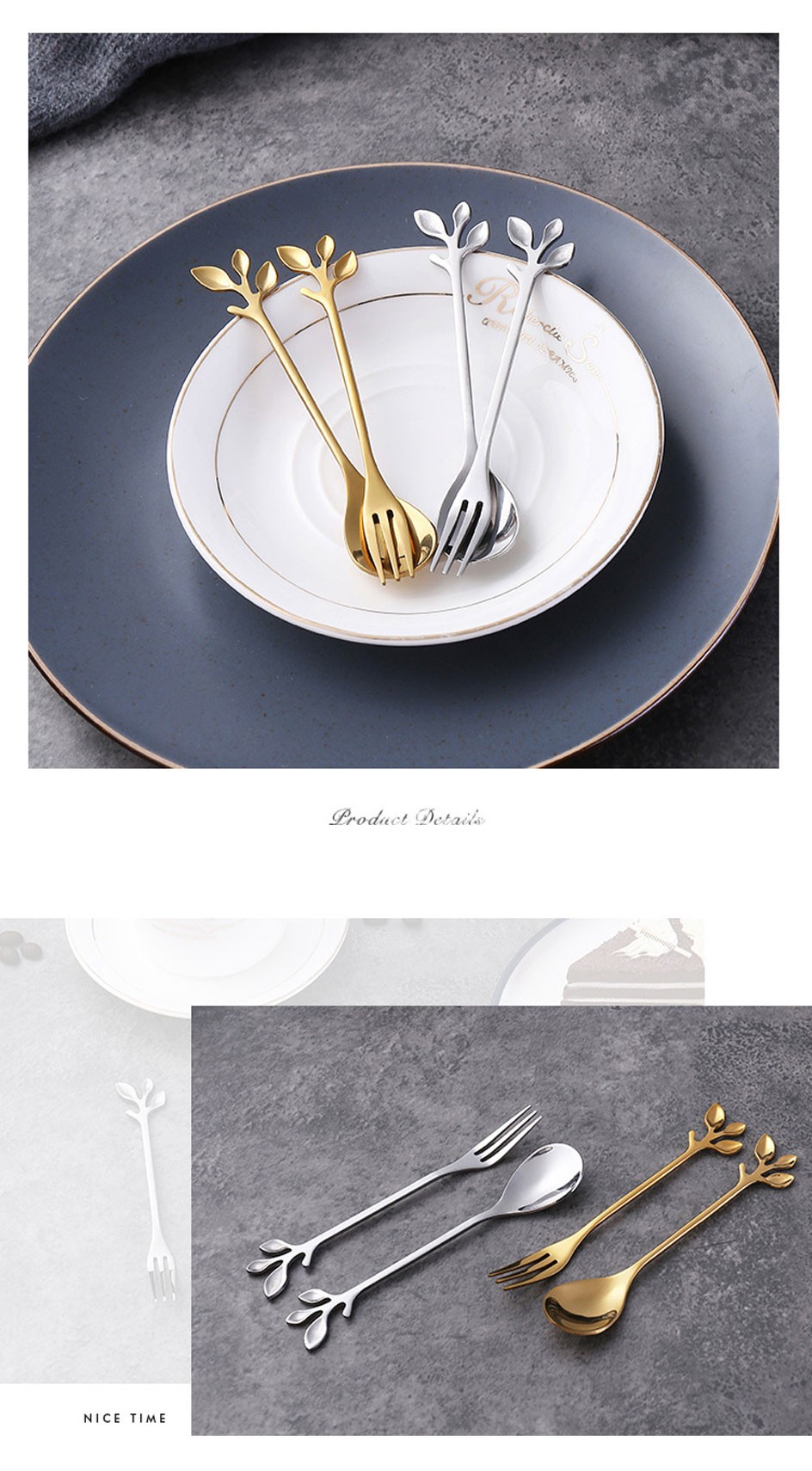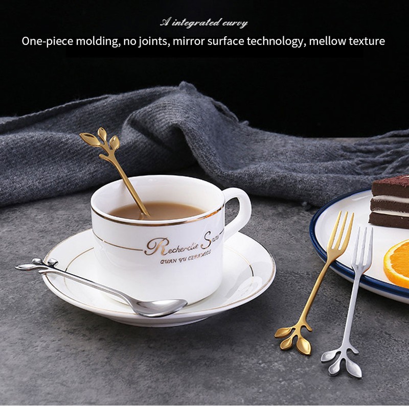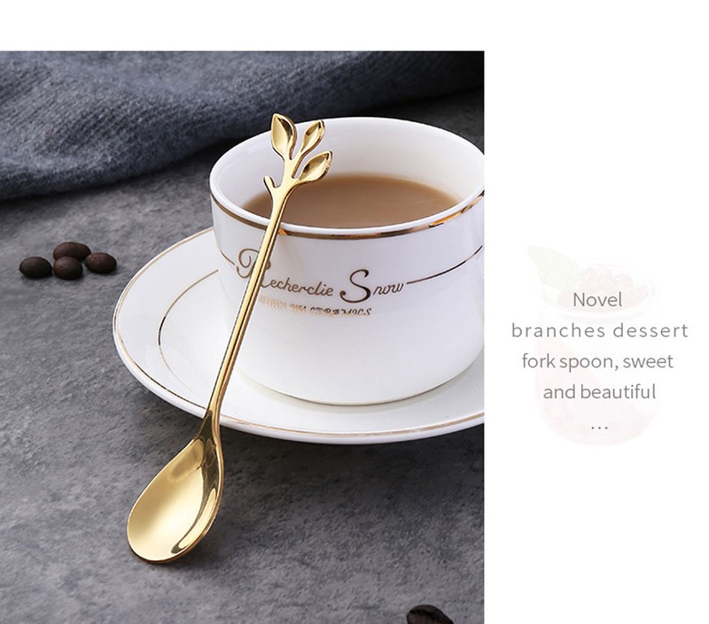 Creative Rvs Lepel Tak Bladeren Lepel Vork Koffie Lepel Kerstcadeaus Keuken Accessoires Servies Decoratie