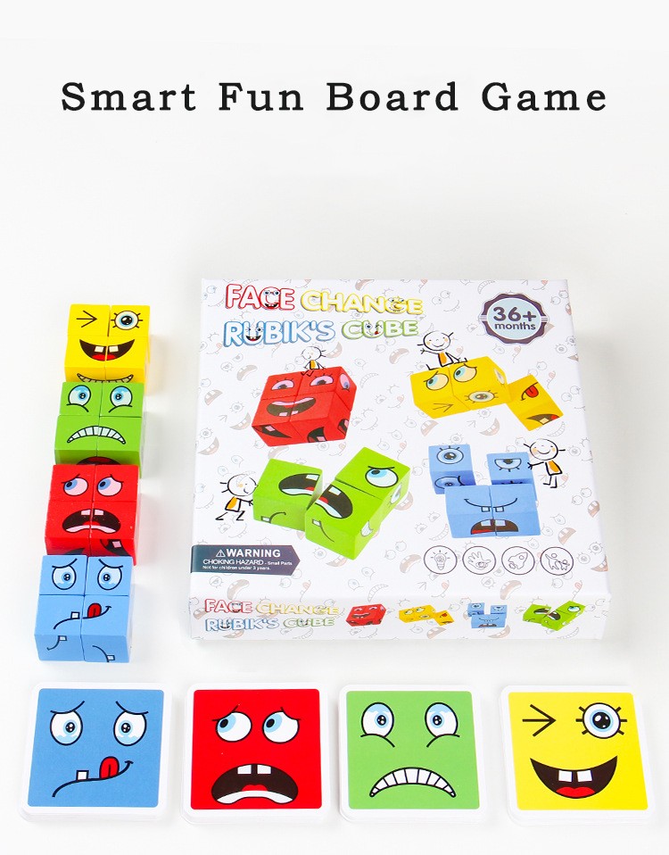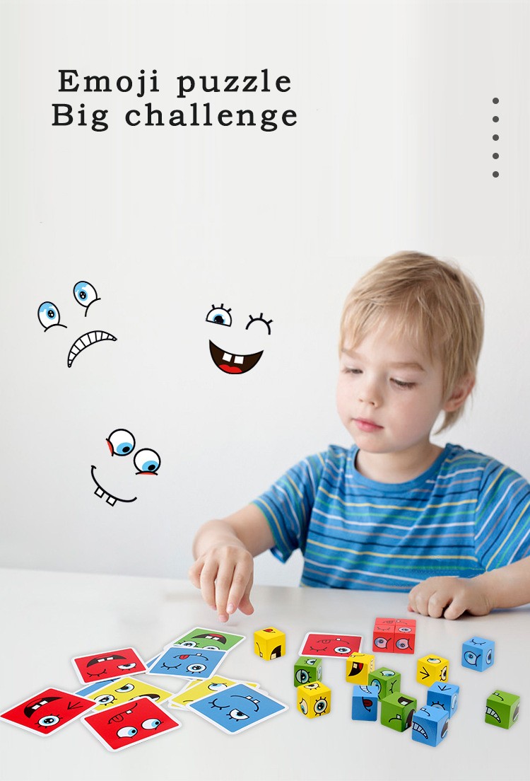 • Cube Gezicht Veranderende Bouwstenen Board Game Cartoon Puzzel Montessori Speelgoed Houten Level Game Denken Uitdaging Kinderen Speelgoed