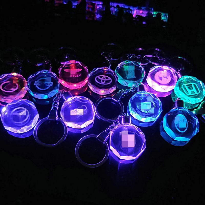 Llaveros De Cristal Con Logotipo De Coche Personalizado, Decoración De Rey, Patrones Grabados Con Láser Y Luz Colorida
