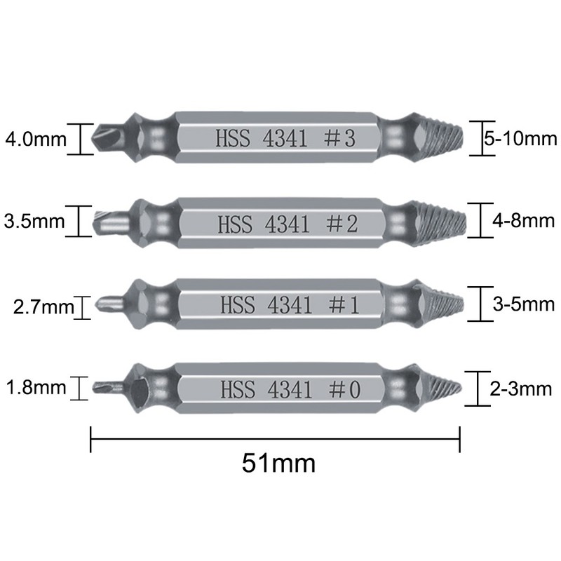 4 pieces/set of A/B screw extractor (specific size as shown in the picture)