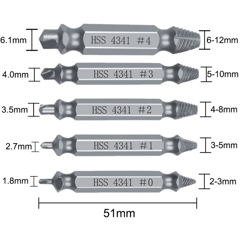 5 pieces/set of A/B screw extractor (specific size as shown in the figure)