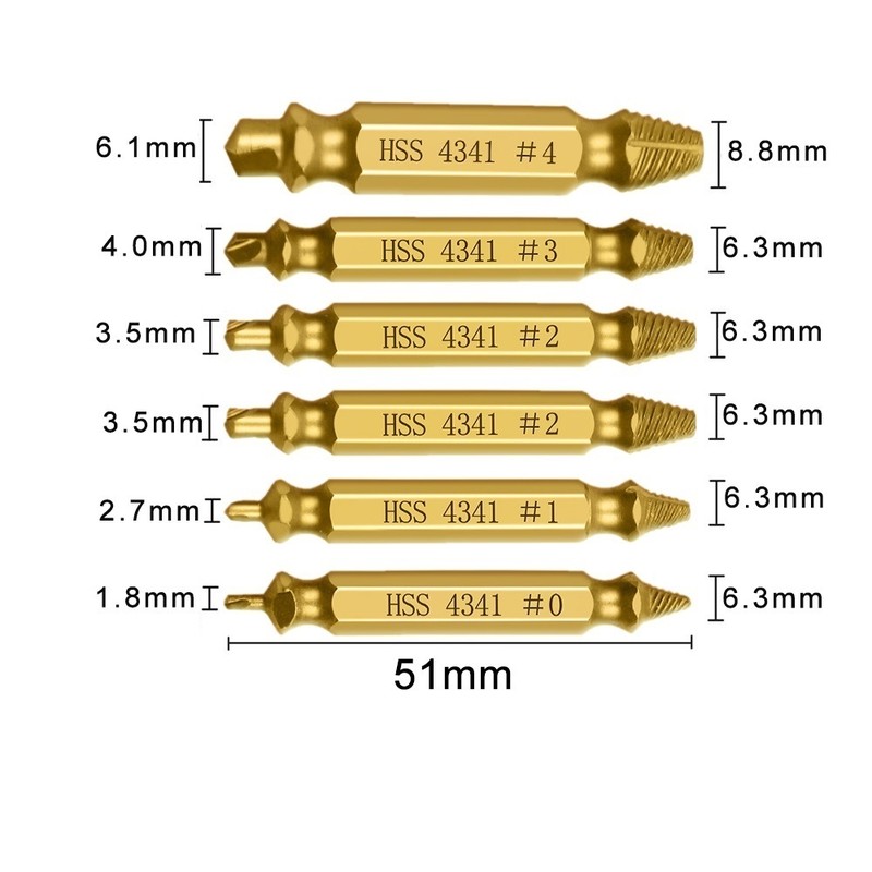 6 pieces/set of A/B screw extractor (specific size as shown in the picture)