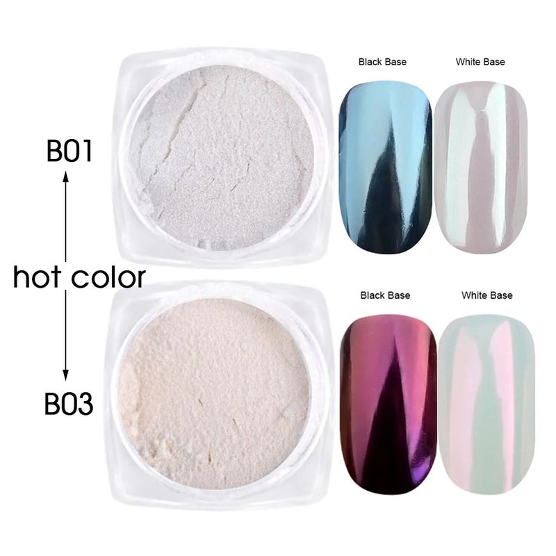 1 Box Perle Nagel Glitter Pulver Neon Schimmer Spiegel Meerjungfrau Tauch Weiß Lila Nagel Chrom Pigment Staub Polnischen Decor Glb01-07