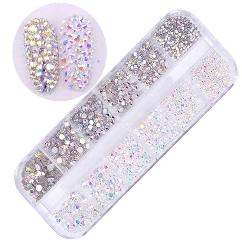 12 Boxen/Set Von Ab Kristall Strass Diamant Edelstein 3D Glitter Nail Art Dekoration Schönheit