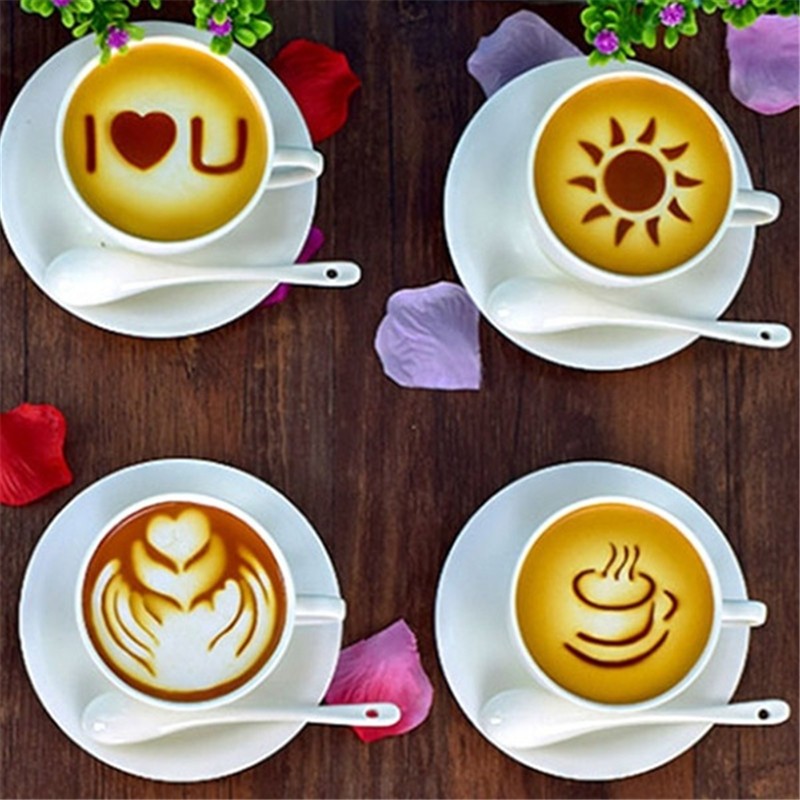 16Pcs Cappuccino Latte Kaffee Schablonen Phantasie Barista Cappuccino Template Mold Kaffee Zeichnung Kuchen Form Spray Diy Kunst Schablonen