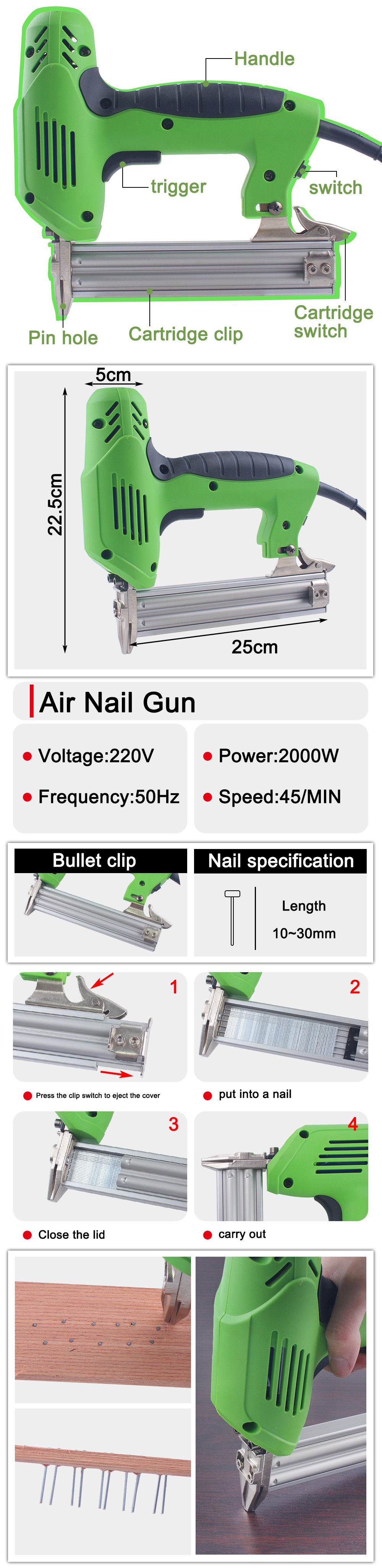 1800W ~ 2000W Mini Elektrische Nagel Pistole Gerade Nagel Pistole Elektrische Werkzeug 30 Pcs/Min 220V ~ 240V Holzbearbeitung Für Möbel