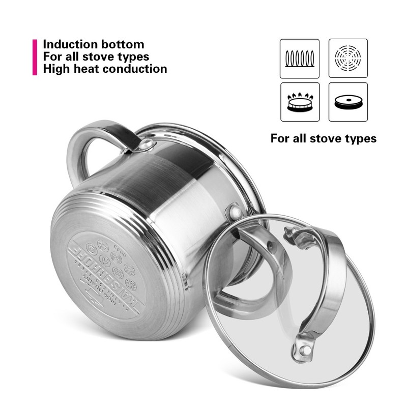 1L Suppentopf Mit Glas Deckel Zwei Seite Griff Edelstahl Topf Butter Wärmer Induktion Herd