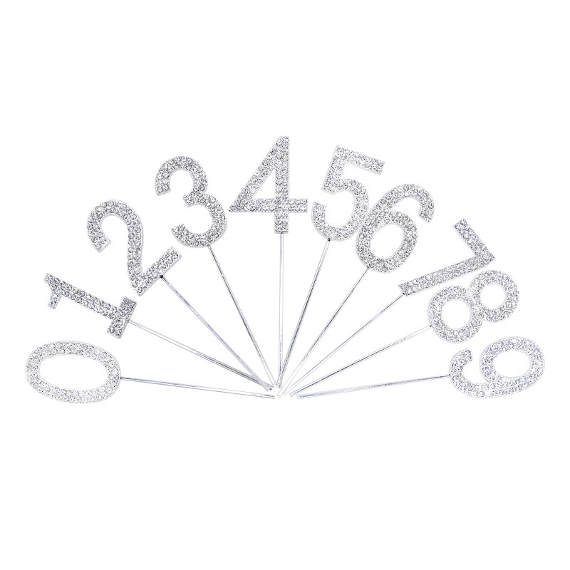 1Pc Glitter Legierung Strass Anzahl Kuchen Topper Baby Dusche Geburtstag Dekoration Hochzeit Gold Silber Digitale Kuchen Dessert Decor