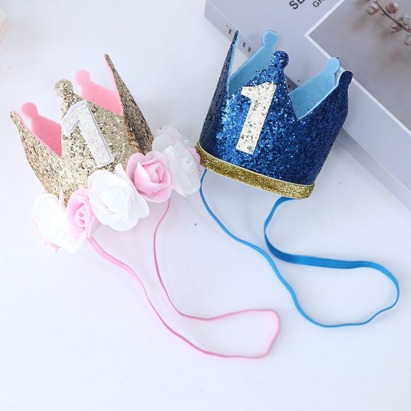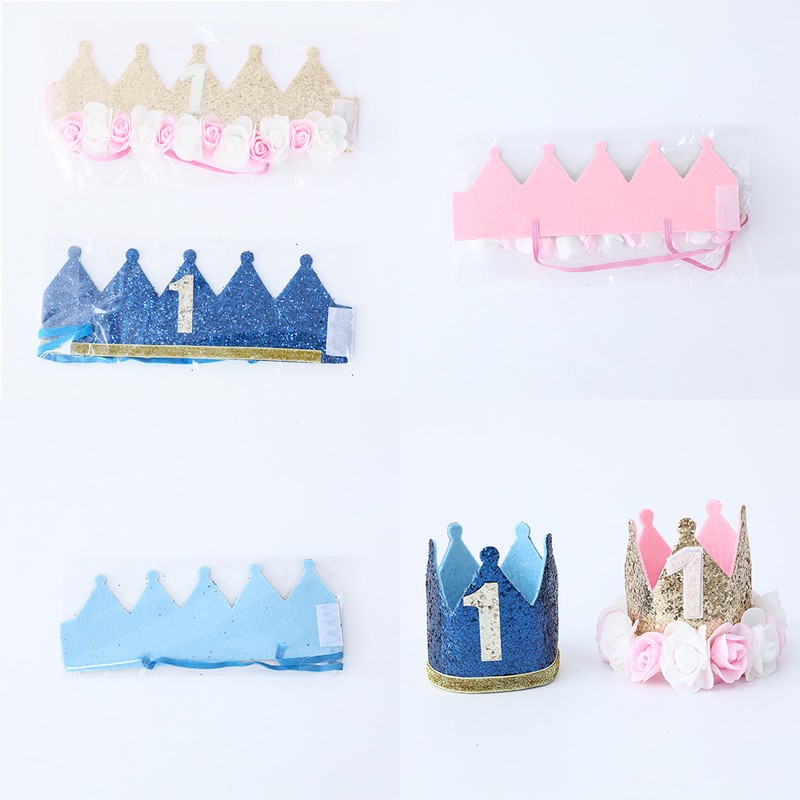 1St Geburtstag Krone Hut Jungen Mädchen Baby Dusche Dekore Neugeborenen Baby Geburtstag Party Dekorationen Rosa Blau Prinzessin Baby Stirnband