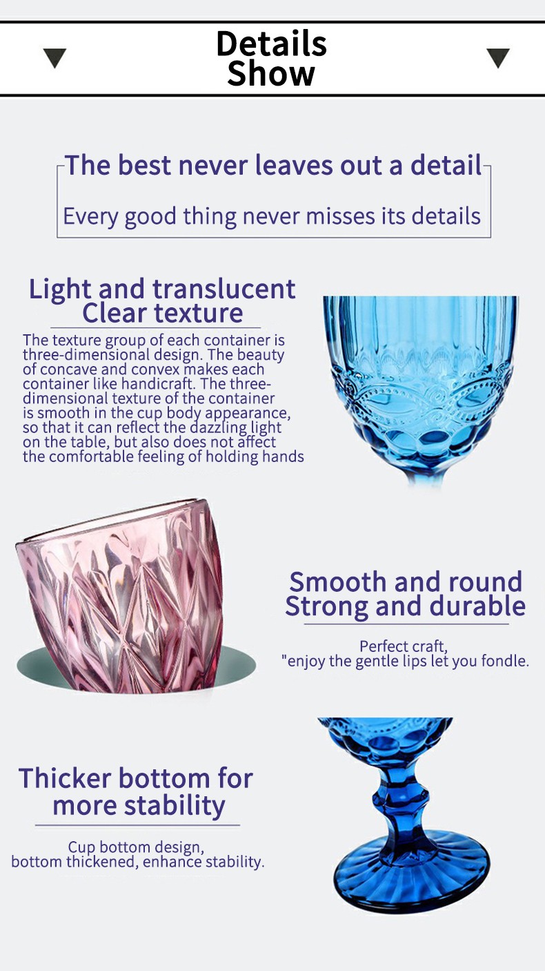 1. die textur gruppe von jeder container ist drei-dimensional design. Die schönheit von konkaven und konvexen macht jeder behälter wie handwerk. Die drei-dimensional textur der behälter ist in der tasse und die körper aussehen ist glatt, so, dass es können reflektieren die schillernde licht auf die tabelle, aber auch keinen einfluss auf die komfortable gefühl der holding hände