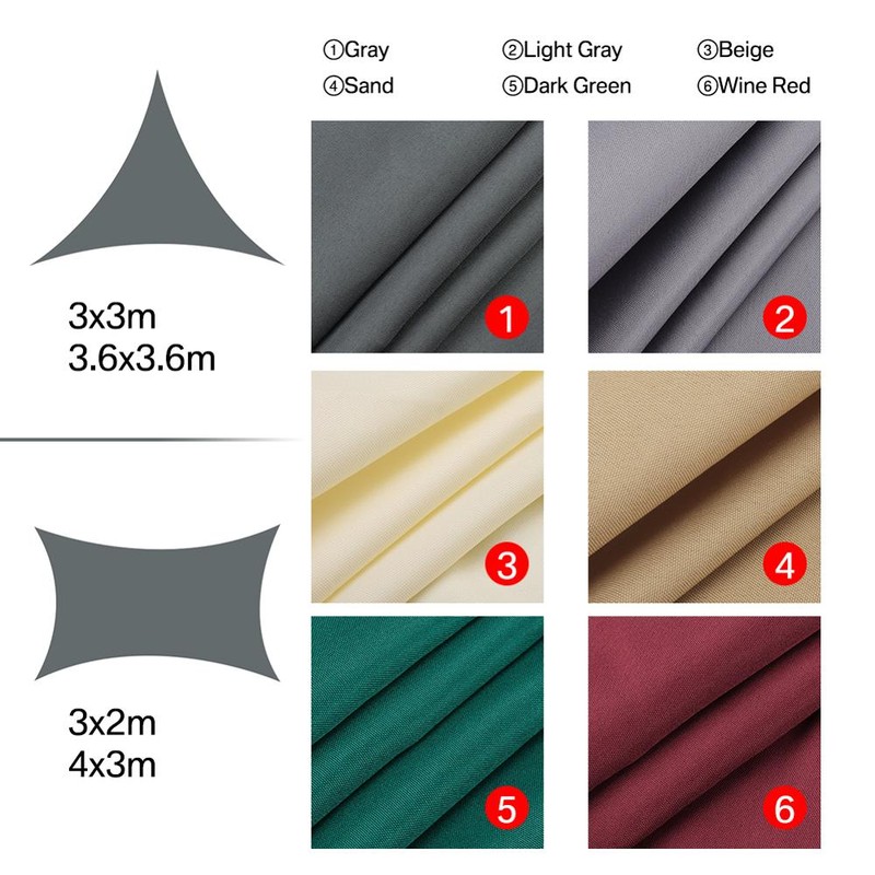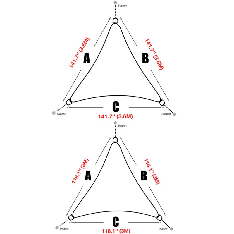 Für Dreieck sonnensegel: 2x2x2M 3x3x3M, 3,6x3,6x3,6 M,5x5x5M