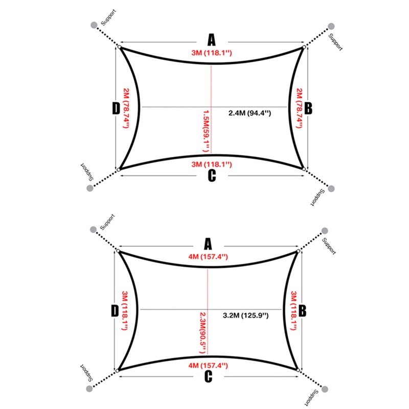 Für Rechteck sonnensegel: 3x2M, 3x4M